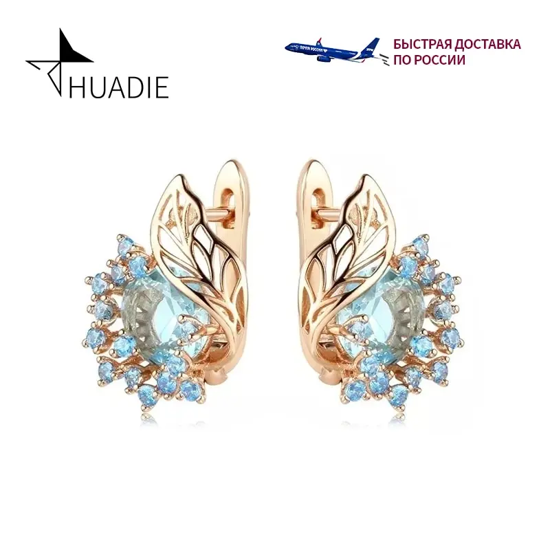HUADIE женские серьги с цирконами в форме цветка. Разноцветные серьги. Бижутерия для женщин на вечерний выход. серьги 2022 тренд