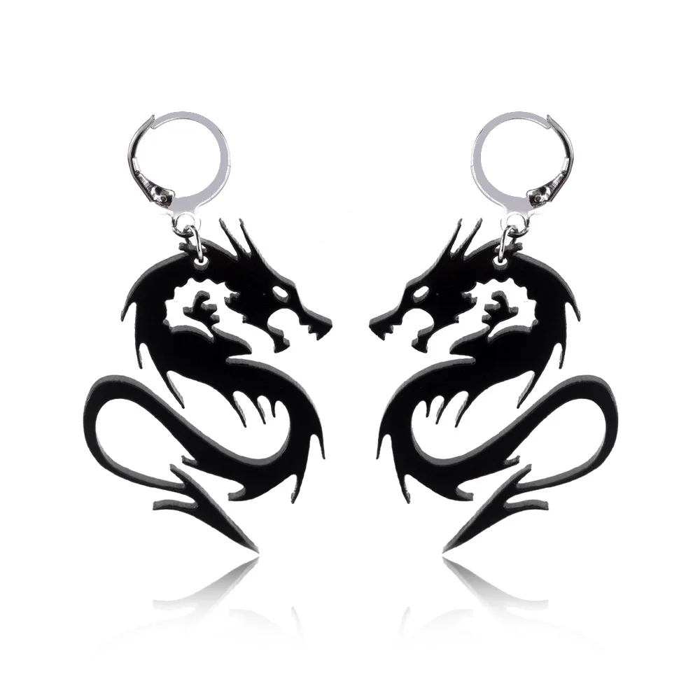Серьги-Драконы женские в китайском стиле, металлические, золотистые, серебристые, с зеркальной поверхностью