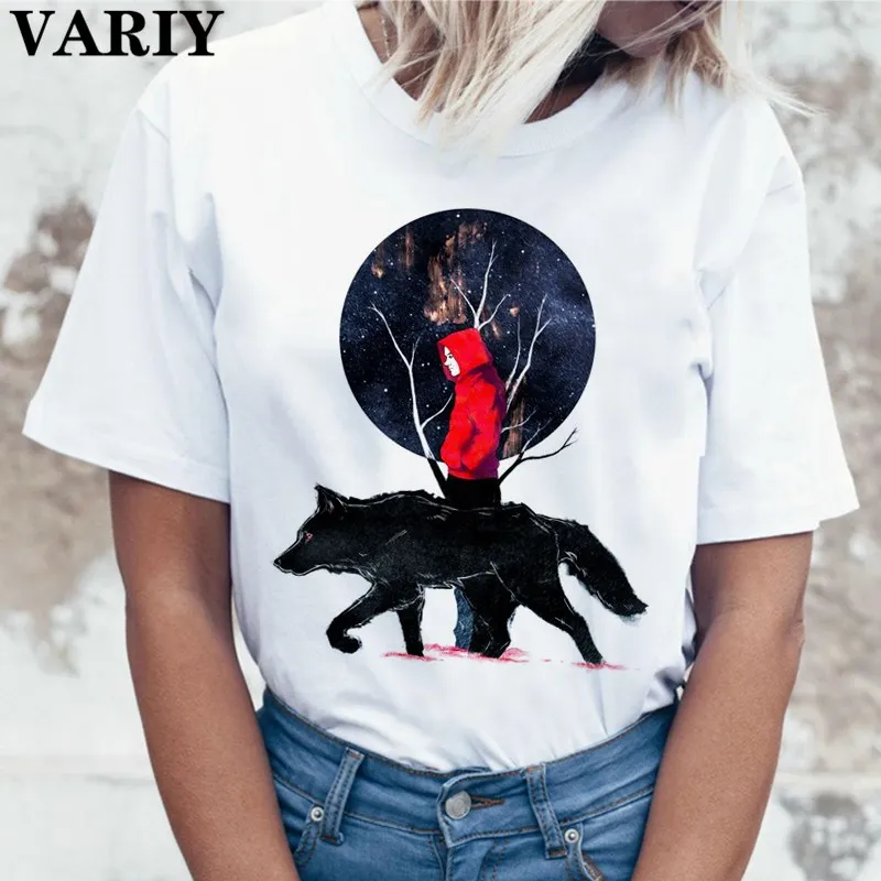 Футболка женская с рисунком, в японском стиле, с мультяшным принтом