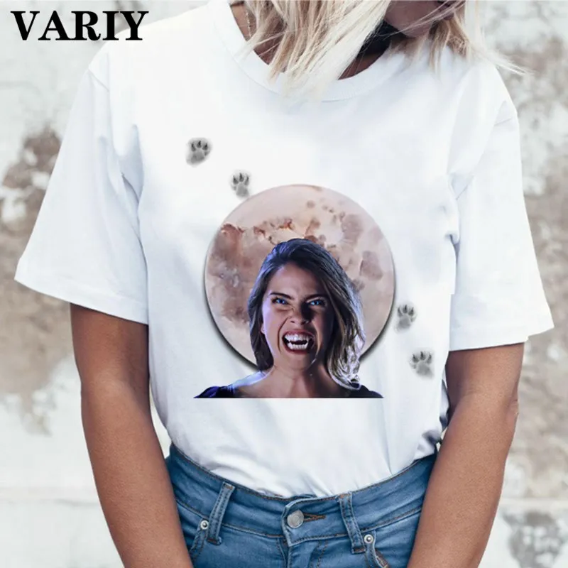 Забавные топы, футболка с изображением дневников вампира, летняя фу...