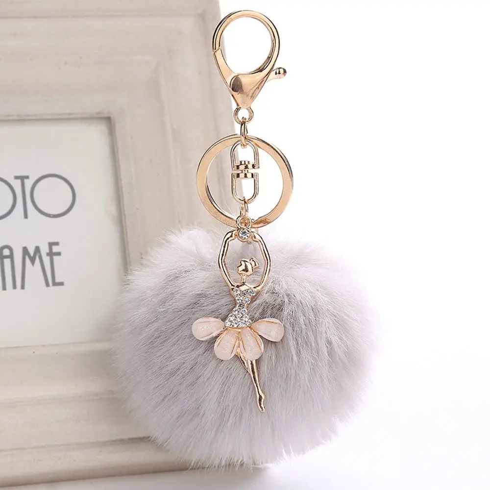 Модные балетные брелки для девочек, женские хрустальные брелки с помпоном, золотые пушистые буффы для танцев, подвески, кольцо для ключей, ювелирные изделия