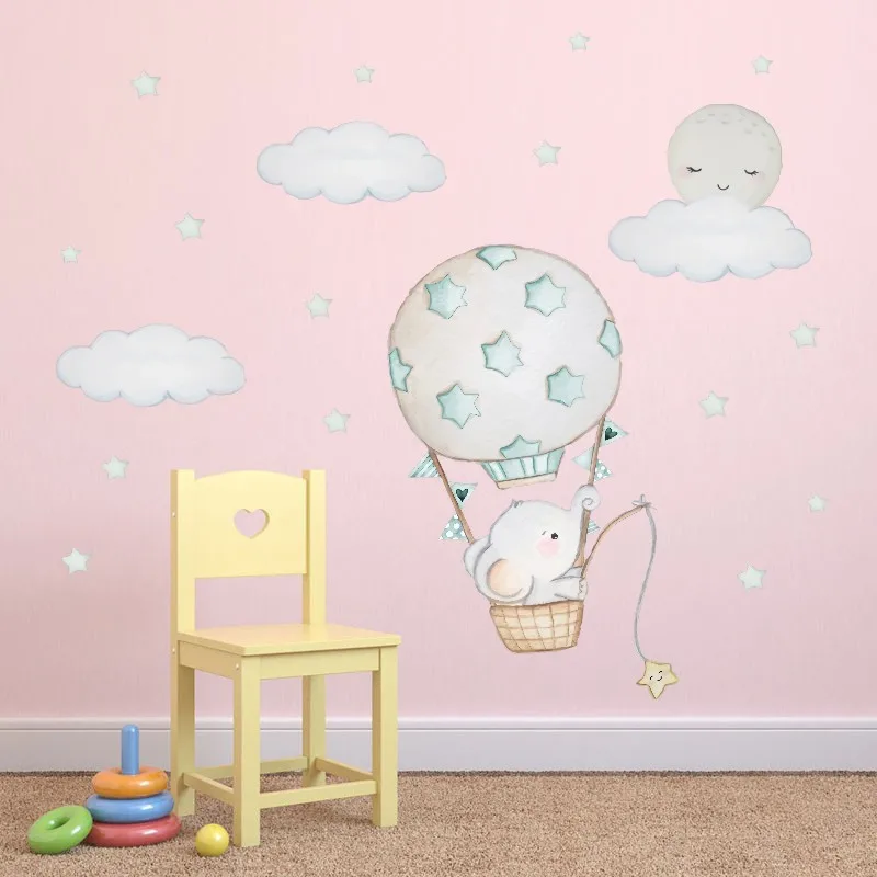 Мультяшные детские наклейки на стену в виде слона для детской комнаты украшение для детской комнаты воздушный шар настенные наклейки облако Луна Звезды ПВХ