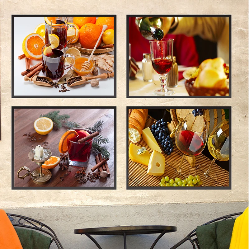 Настенная картина в скандинавском стиле с изображением овощей, фруктов, красного вина, кухни, канвы