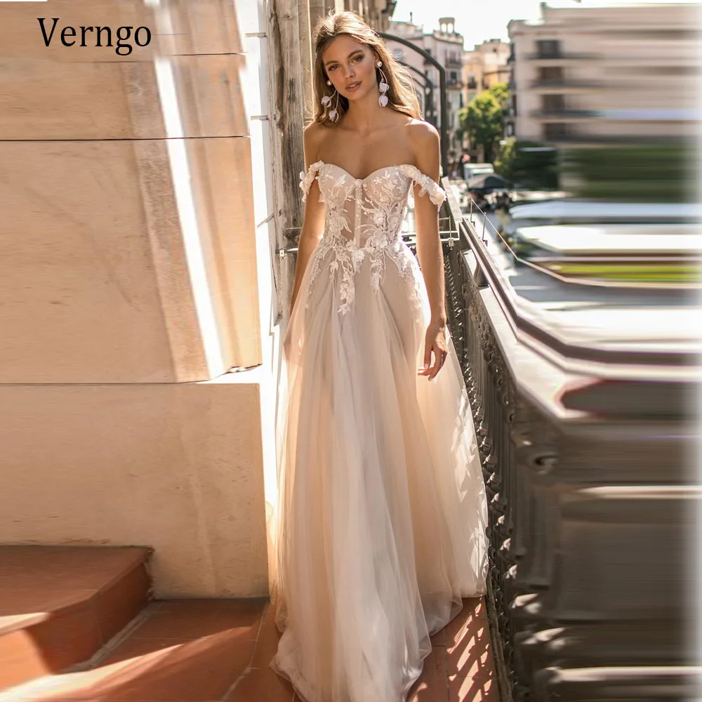 Пляжное свадебное платье Verngo в стиле бохо с открытыми плечами, ТРАПЕЦИЕВИДНОЕ Элегантное свадебное платье в деревенском стиле, кружевное Тюлевое платье невесты с аппликацией