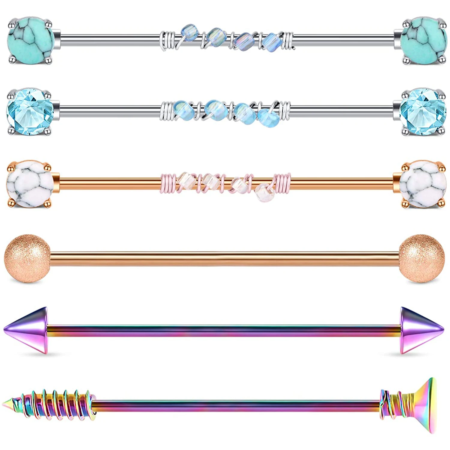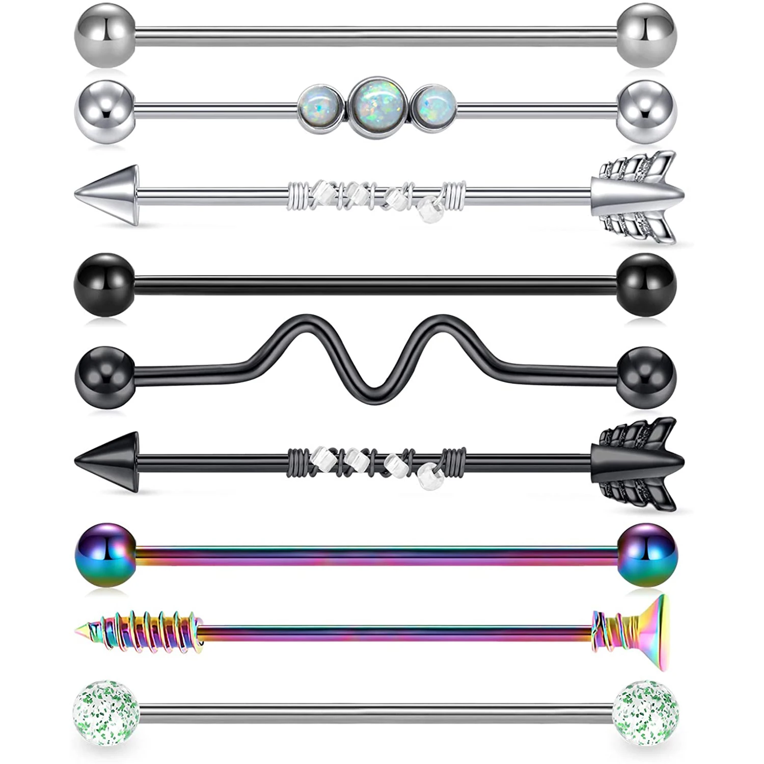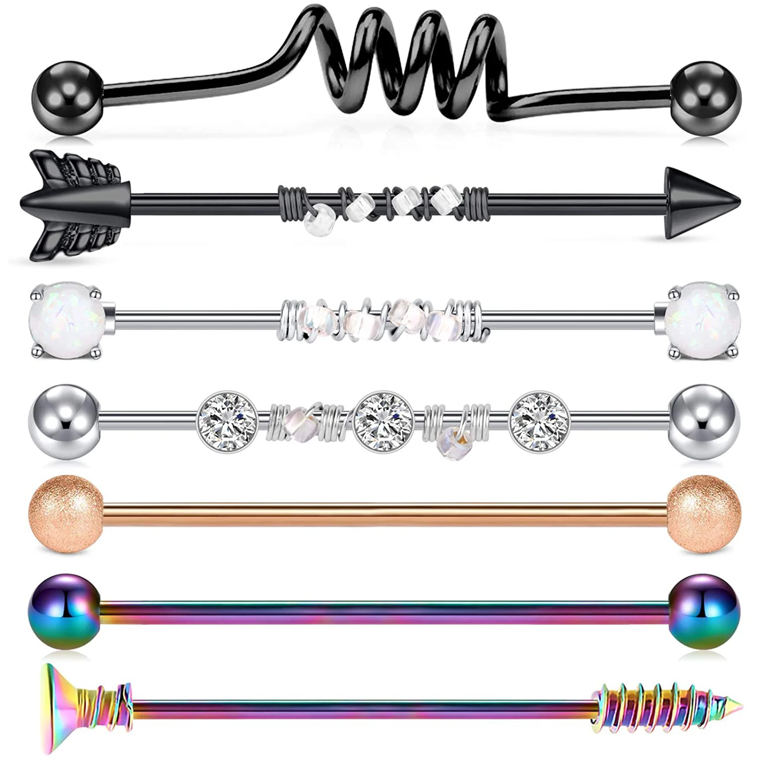 Промышленная Штанга из нержавеющей стали для женщин и мужчин, 14 г, стильные серьги для завивки хрящевой ткани с бусинами 1 и 12 дюйма