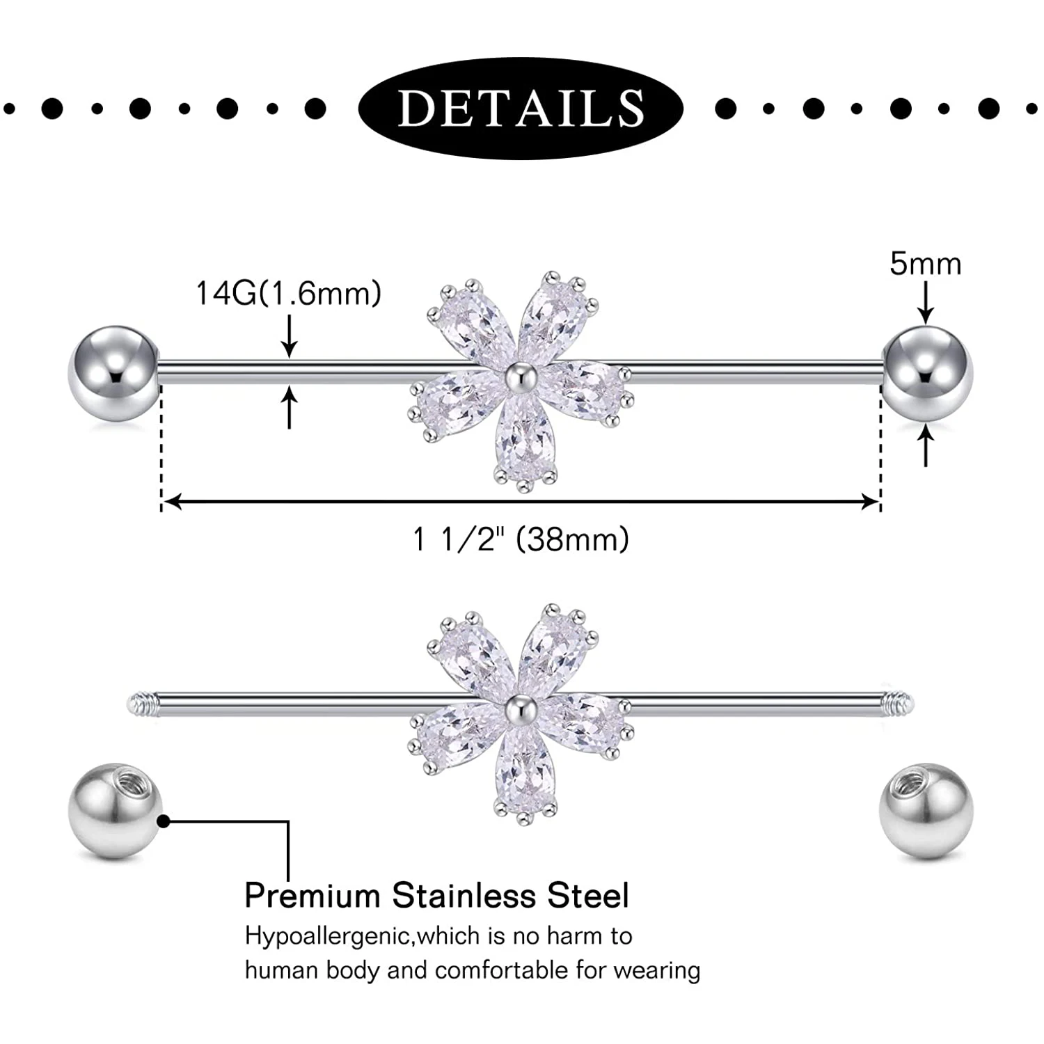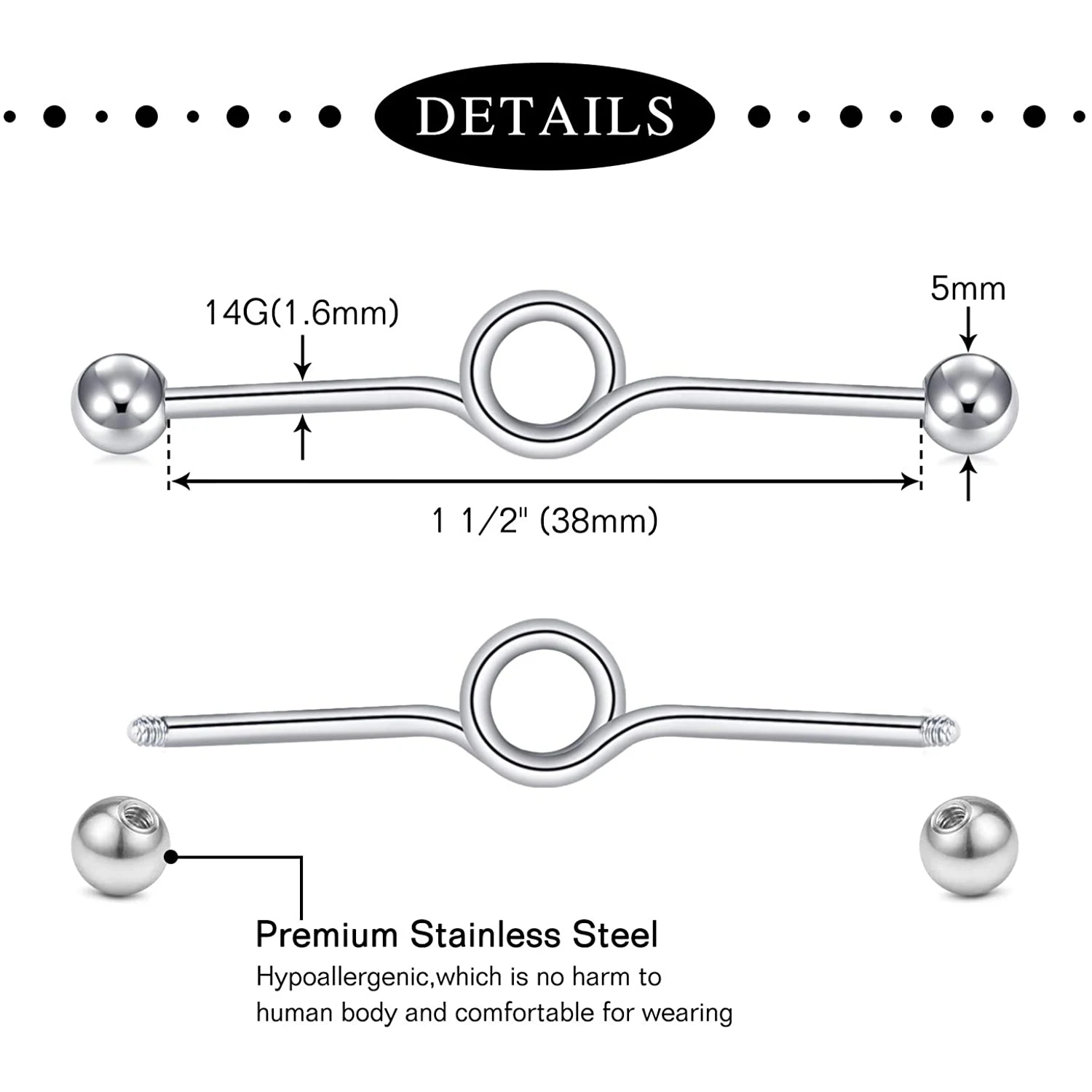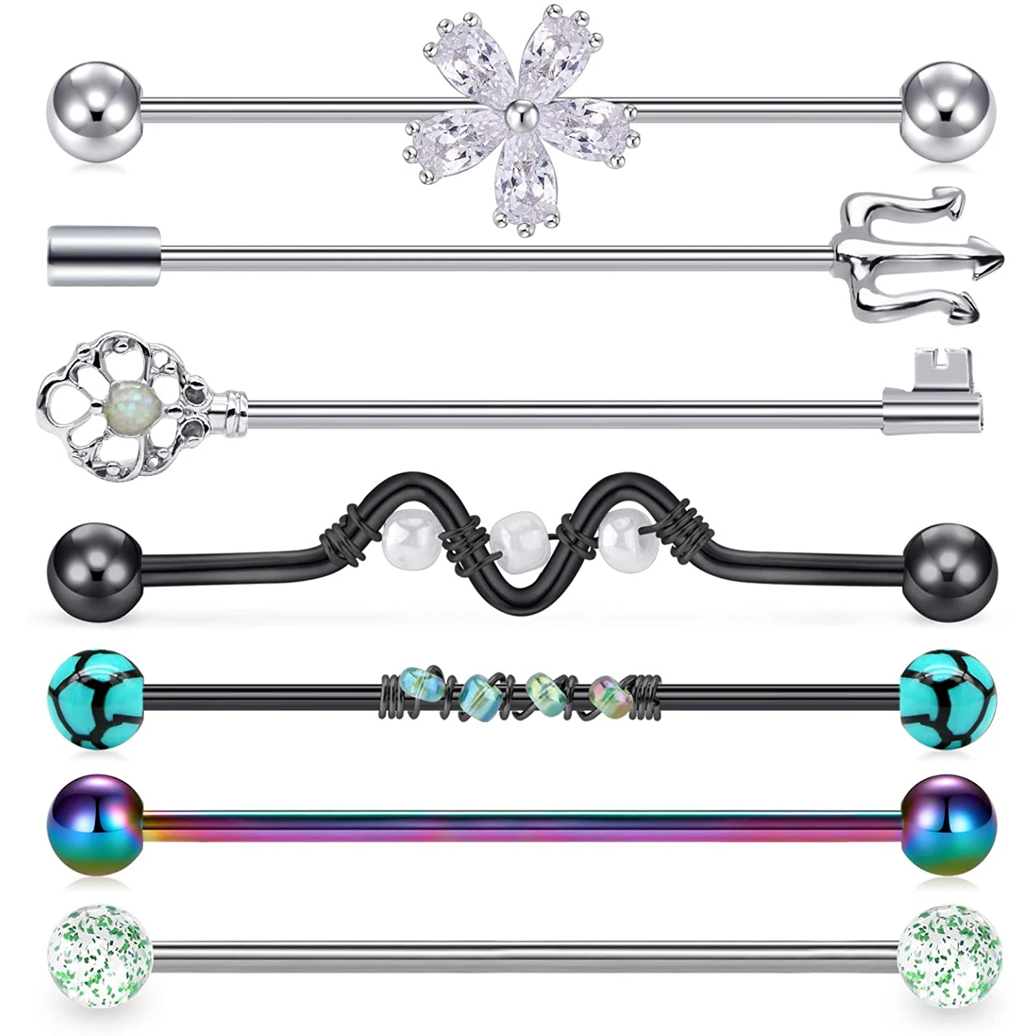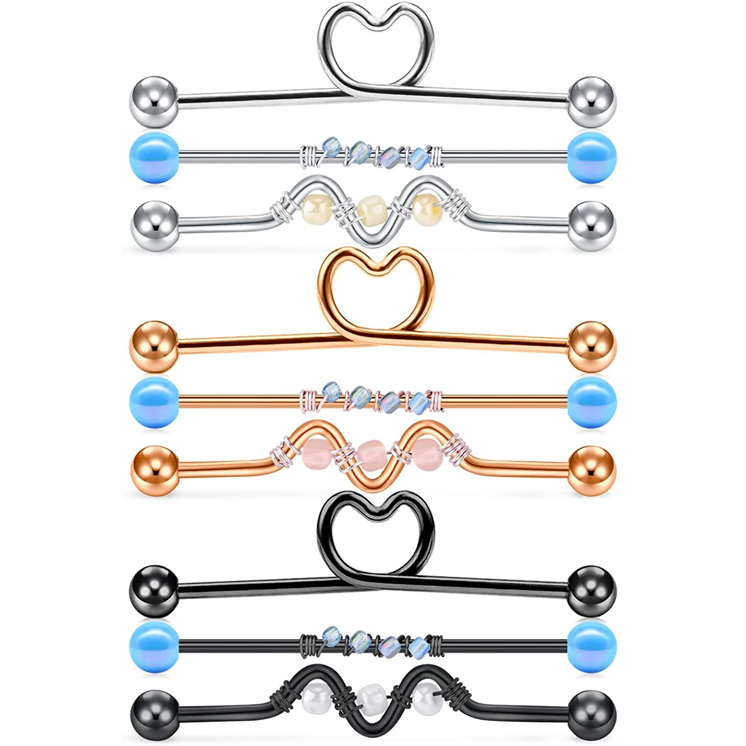 Промышленная Штанга из нержавеющей стали для женщин и мужчин, 14 г, стильные серьги для завивки хрящевой ткани с бусинами 1 и 12 дюйма