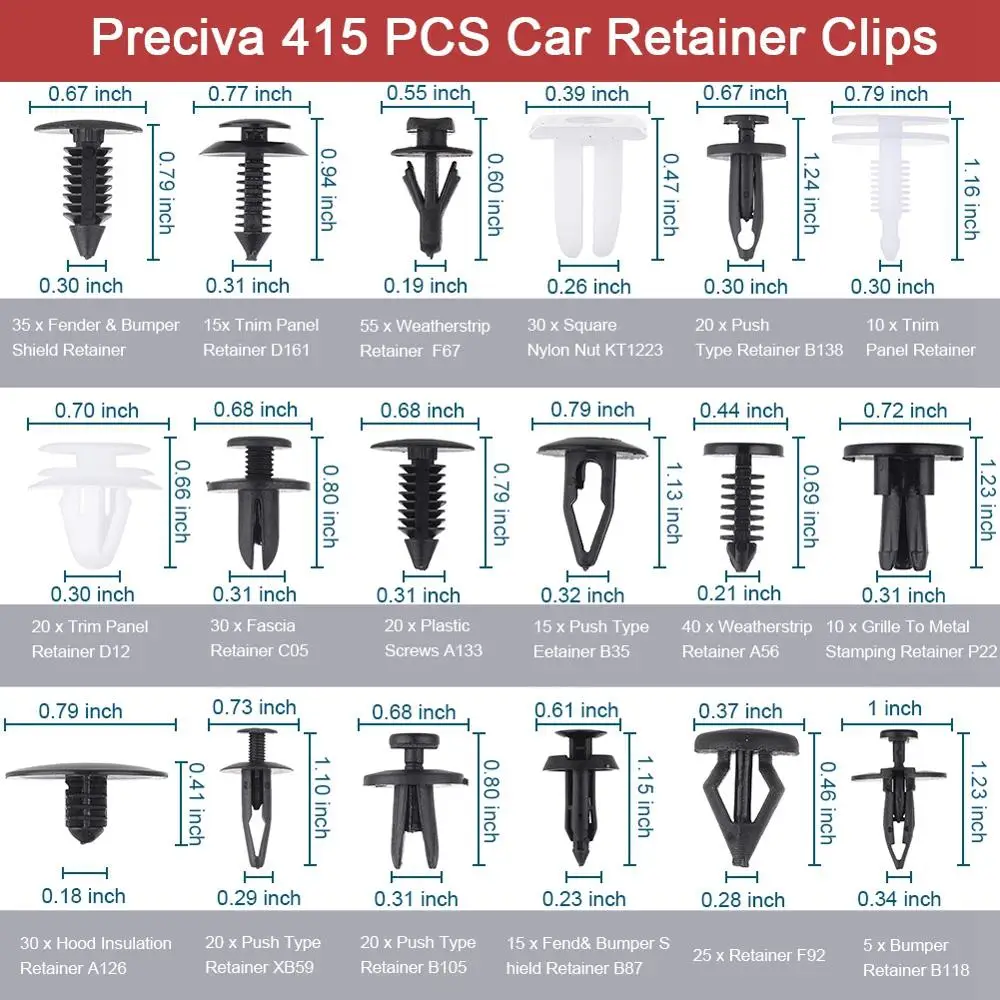 Особенности:1,18 наиболее распространенный размер: нажимные фиксаторы подходят для Mercedes Benz, BMW, TOYOTA, Honda, Subaru, NISSAN, Mazda, Lancer для точной замены. Не только для автомобилей, о которых мы говорим, если Размеры и форма соответствуют вашим требованиям, это также хорошо работает2. Широкое применение: тезисы нажимные зажимы широко используются для автомобильных зажимов для кузова, фиксаторов отделочных панелей, дверных зажимов, зажимов для дверных панелей, зажимов для бампера, зажимы автомобильного крыла, крышки двигателя и запасных щитов для защиты от брызг. Он всегда охватывает некоторые области применения, включая телекоммуникационное оборудование, автомобили, бытовые приборы, мебель и электрическое оборудование.3. Премиальное средство для снятия автомобильных застежек-позволяет быстро и легко снимать дверные панели автомобиля, обрезая зажимы и зажимы для обивки, не нанося им повреждения. Легкий доступ в замкнутые зоны.4. Высококачественный ассортимент фиксаторов: нажимные заклепки изготовлены из сверхпрочного пластика и нейлона, который отличается прочностью, прочностью и устойчивостью к вибрации, не сломается и не трескается.5. Простота в использовании: вы можете получить все, что вам нужно в этой коробке, это может сэкономить время и деньги для вас и идеально заменить ваш старый или изношенный. Это также для механика, автомобиля модификации любовника и т. Д.6. Компактный размер, легкий вес. Удобно хранить или носить с собой в автомобиле. Поставляется с пластиковой коробкой с отсеками для организованного хранения.Спецификация:Материал: пластикКоличество товара: 415 шт.Приспособление: для большинства транспортных средствПрименение: широко используется для автомобильного бампера, боковой юбки, Радиаторного щита, фиксаторов, решеток, крышки двигателя, отделки дверей, различных отделочных панелей и т. Д.Упаковка включает в себя:Набор автозажимов и крепежных деталей 415x5x многоразовые кабельные стяжки4x Автомобильная панель для удаления рулонов1x жесткий крепеж для удаления20x губчатая подушка