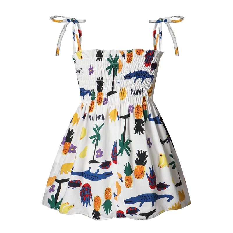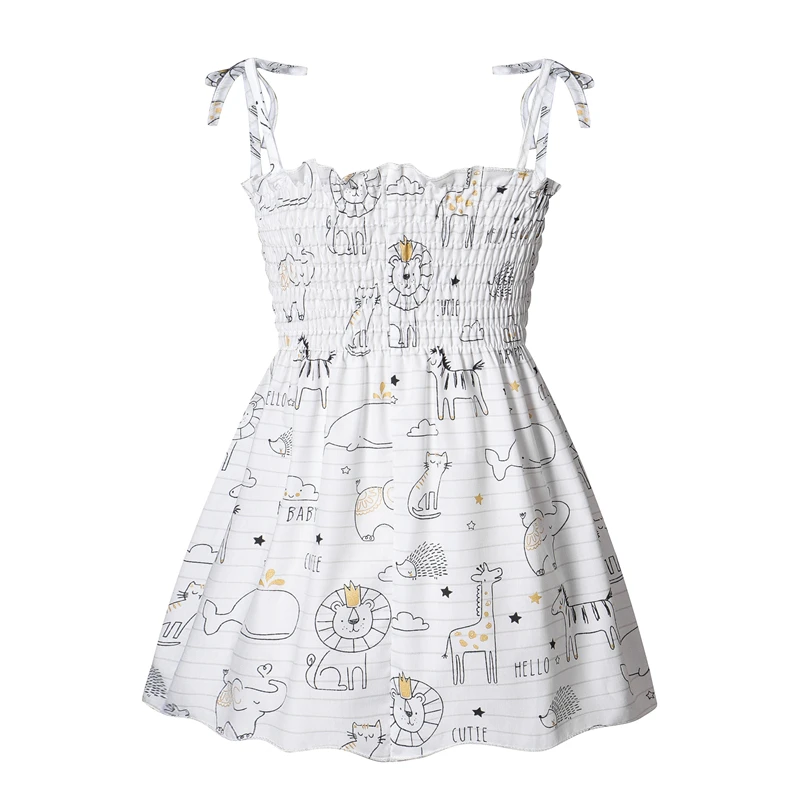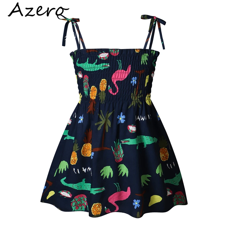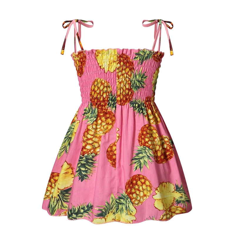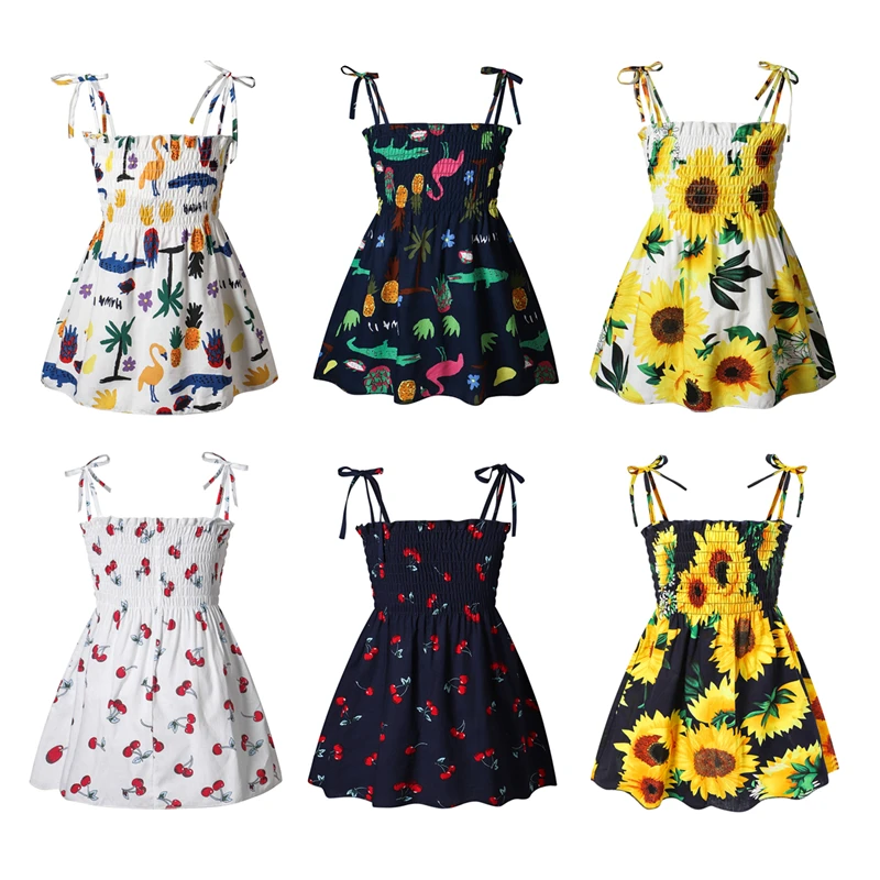 Детское Хлопковое платье без рукавов, на бретельках, с цветочным принтом, Повседневный Сарафан для девочек, лето От 1 до 7 лет
