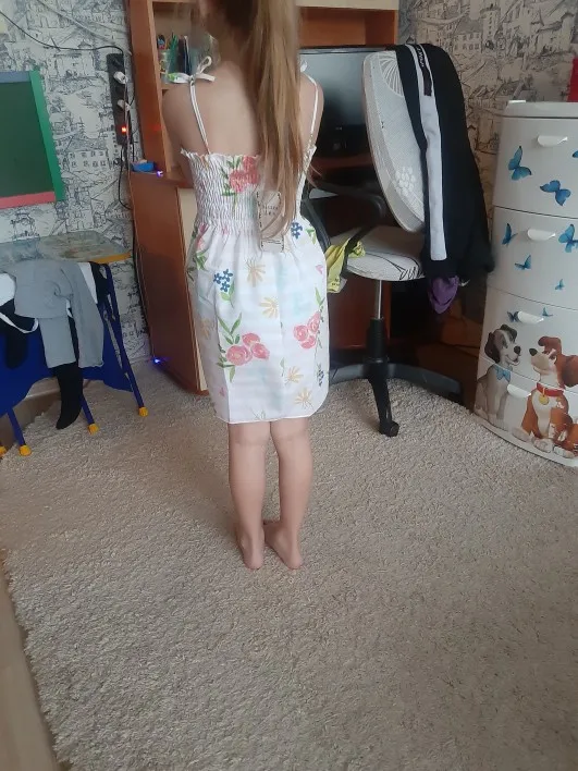 Хорошее платье, дочке понравилось. Брала 4Т на рост 93 - длина по колено, может чуть ниже, резинка на груди чуть свободна (дочка худенькая). По пошиву не стоит ждать супер качества) края обработаны просто оверлоком, даже без подворачивания. Но главное, что дочке понравилось, летом бегать самое оно.