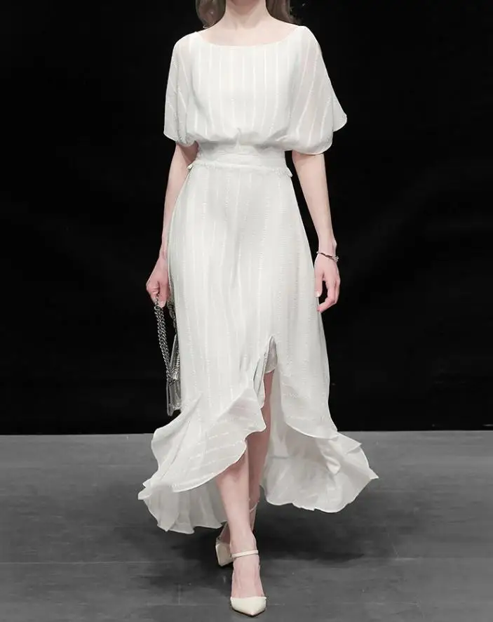Женское элегантное белое платье, высококачественное свадебное коктейльное платье, женское асимметричное дизайнерское шифоновое платье