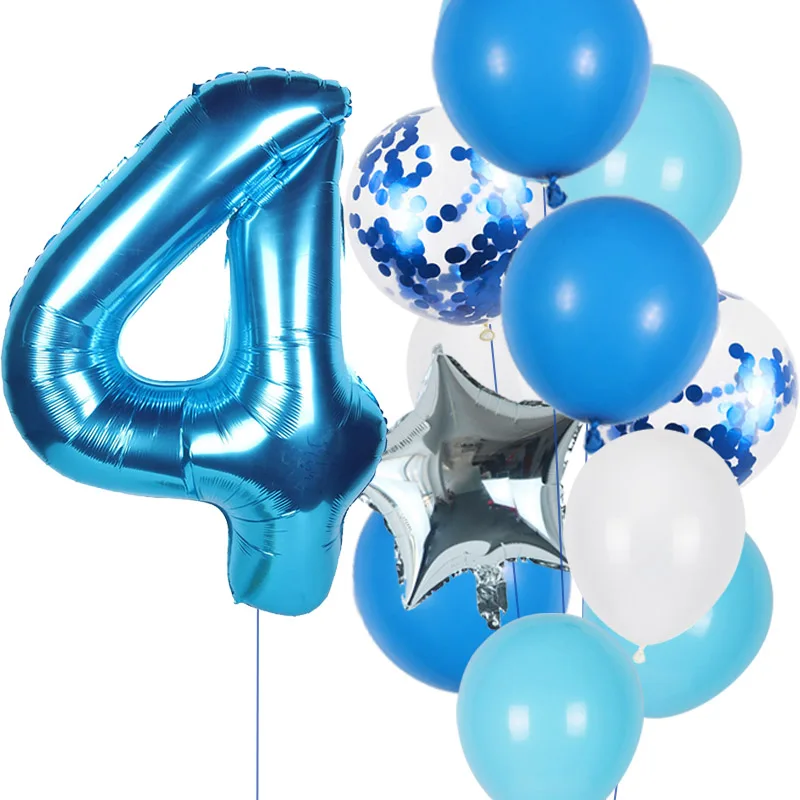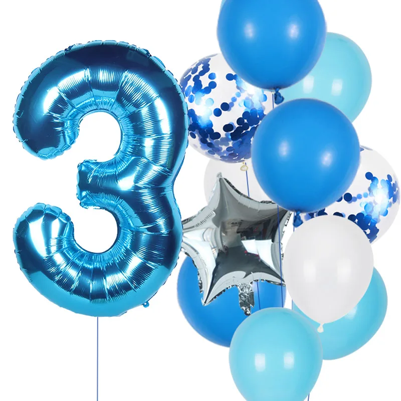 Воздушные шары латексные с конфетти, голубые, для мальчика, 1, 2, 3, 4, 5, 6, 7, 8, От 9 до 10 лет, 12 шт.