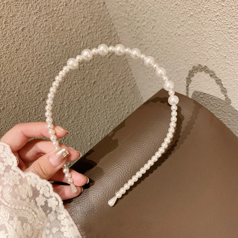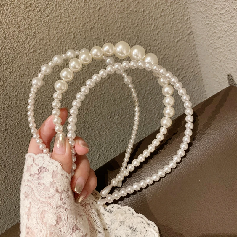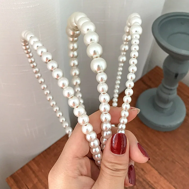 Повязка на голову женская, винтажная, большая, жемчужный обруч для волос