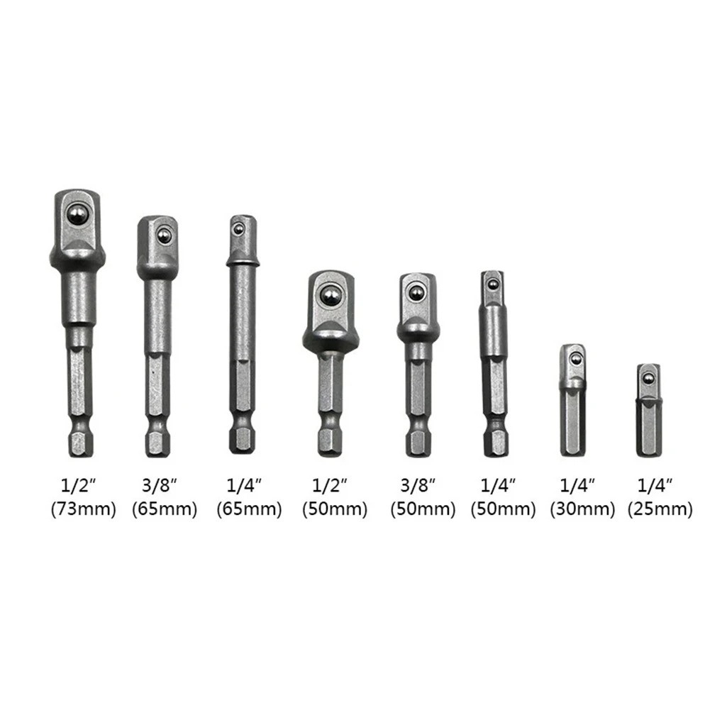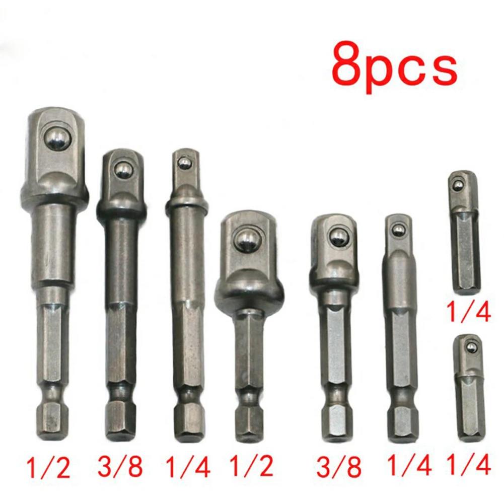 8 шт. набор адаптеров для гнезда, шестигранная гайка, хвостовик, 1/4 "3/8" 1/2 ", соединительная головка, удлинитель, сверла, инструменты