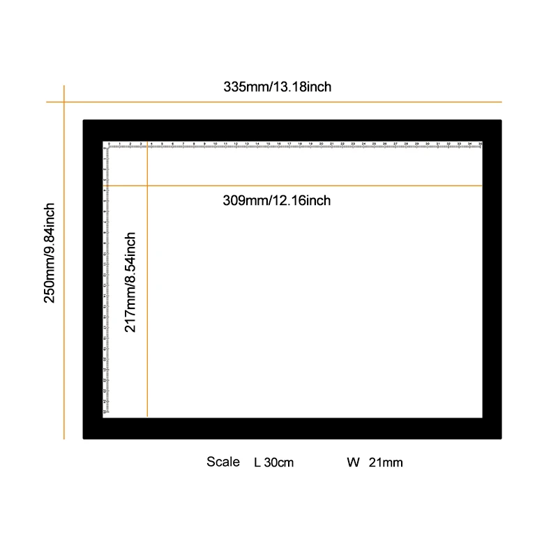 Батареи: литиевая батарея 2500maDinmming:5 уровней затемненияРазмер: 33,5 см * 25 смОсвещенная область: 30,9 см * 21,7 смРабочая поверхность: акриловые панелиСветильник источник света: светодиодныйРабочая Напряжение: 5V/50/60HzПотребляемая мощность: 1,88 ВтИнтерфейс питания: Type-CНаправляющий светильник: светильник-панельРазмер шкалы: ДаПрименение: Трассировка/эскиз/мультфильм/2D Анимация/рентгеновский вид/алмазная живопись