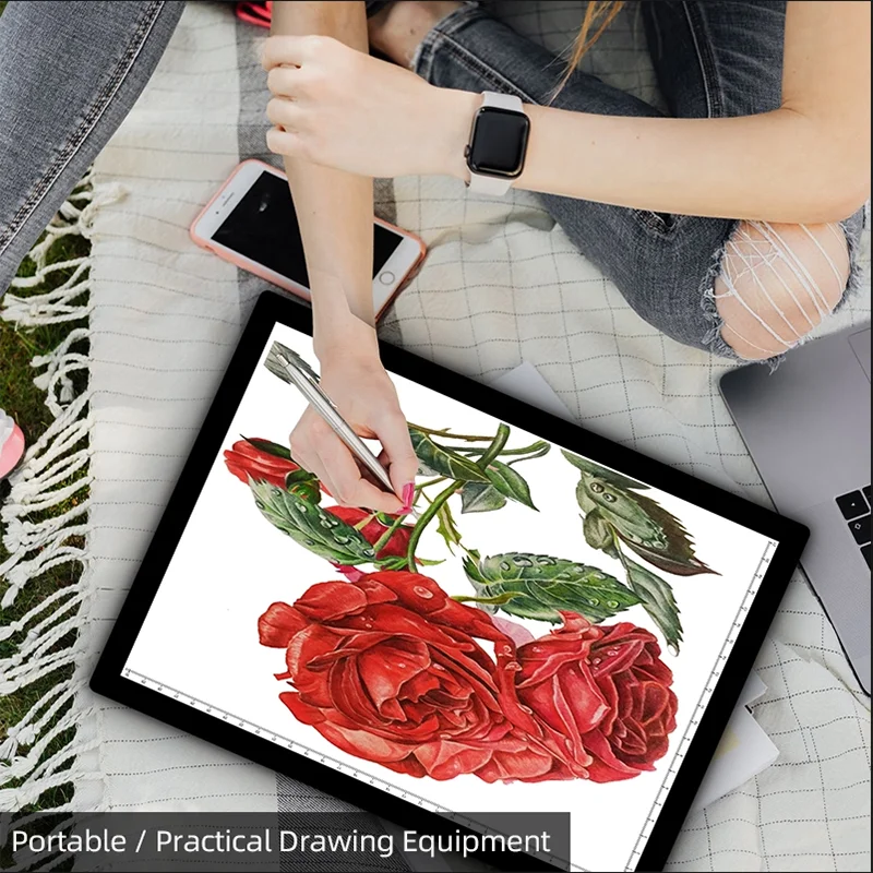 Светильник можно регулировать в соответствии с вашим собственным визуальным ощущением и однородная степень яркости достигает 91.9%, не повредит глаза, даже если использовать его в течение длительного времени. Также отмечены точные весы на панели, светильник помогает художнику делать свои художественные работы более точными и профессиональными. Это хороший выбор для художника.