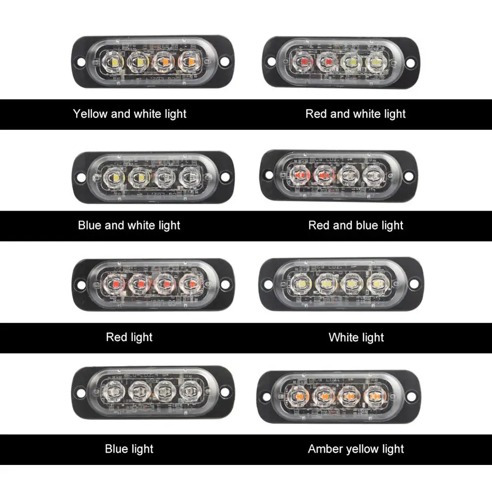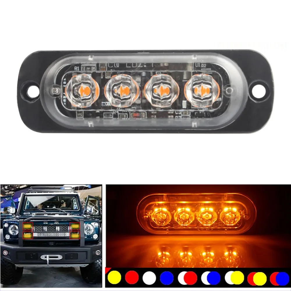 1 Сверхтонкий Автомобильный светодиодный стробоскосветильник с 4 чипами, аварисветильник, решетка, Пробивка, авто мигающий свет для внедорожника, грузовика, мотоцикла, 12-24 В, освещение ba