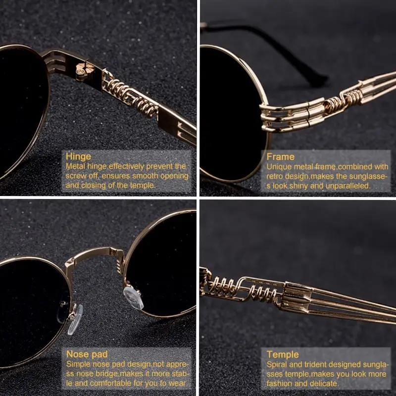 Новый модный круглый металлический солнцезащитные очки для мужчин ретро стимпанк для мужчин и женщин двойной весной ноги красочные очки UV400