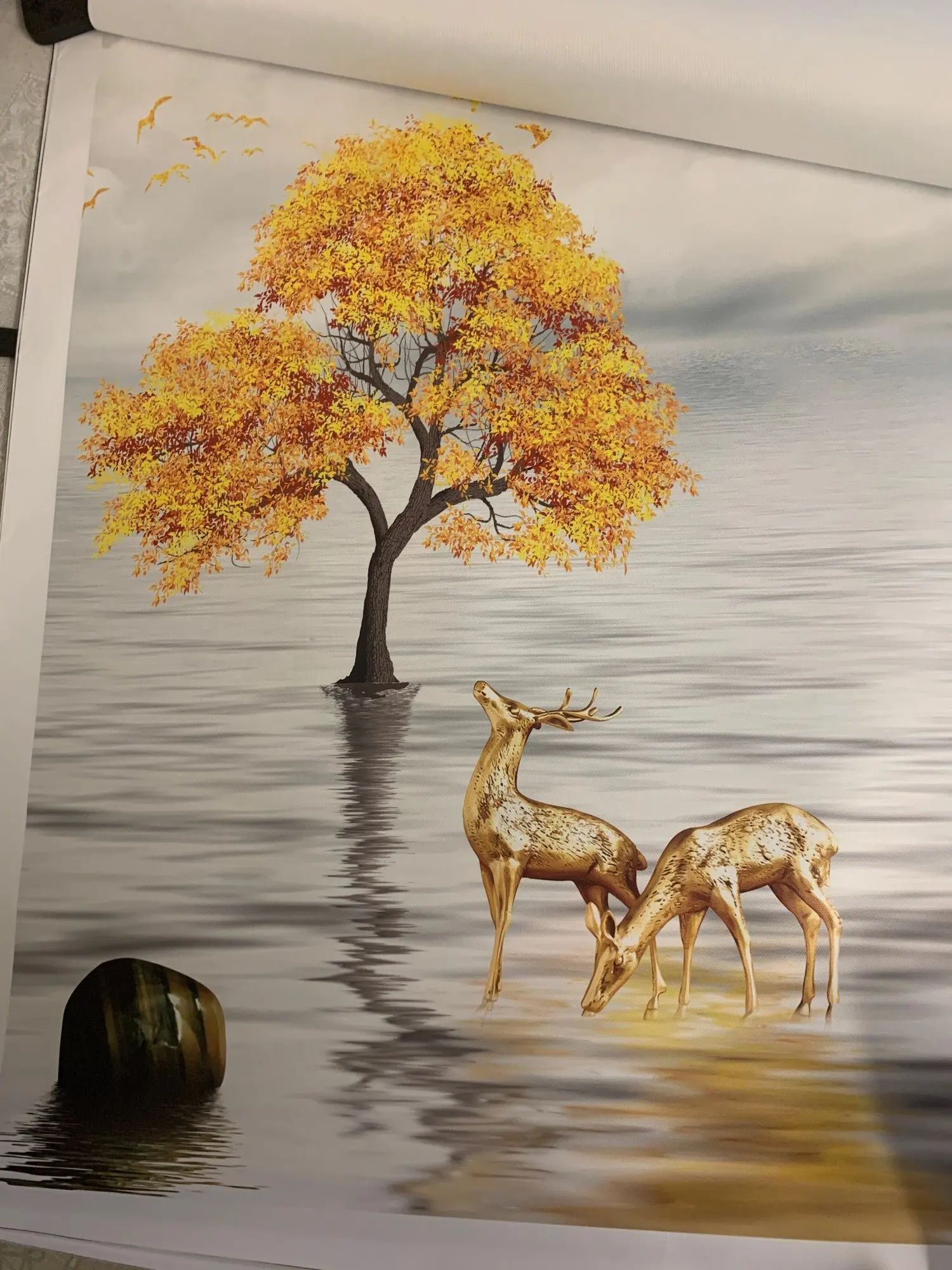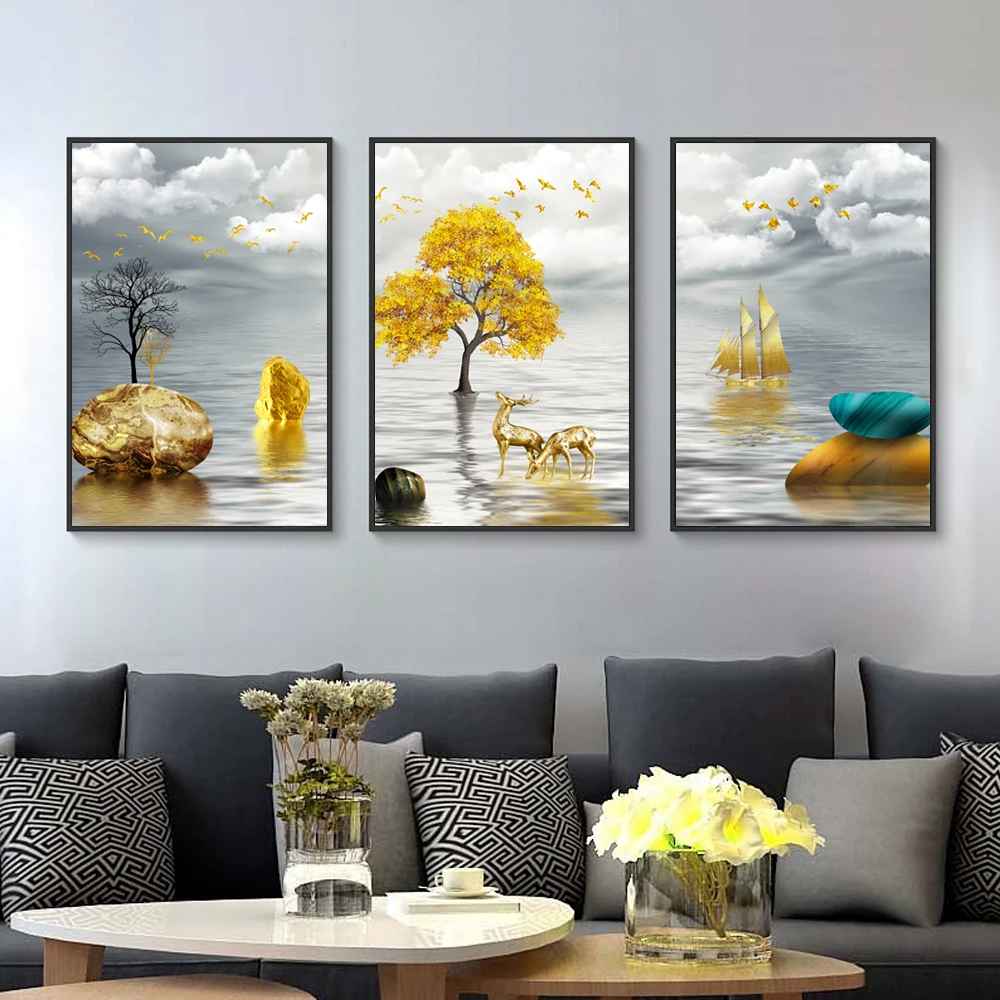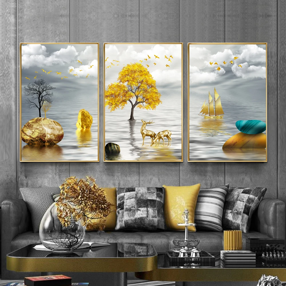 Картина на холсте с изображением золотого оленя, абстрактное искусство, эстетическое украшение комнаты, пейзаж, Настенная картина, Постер с распылением