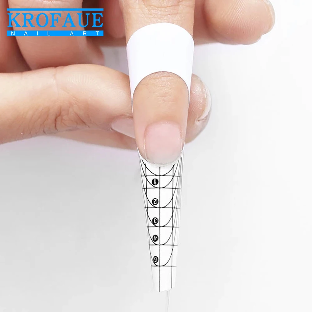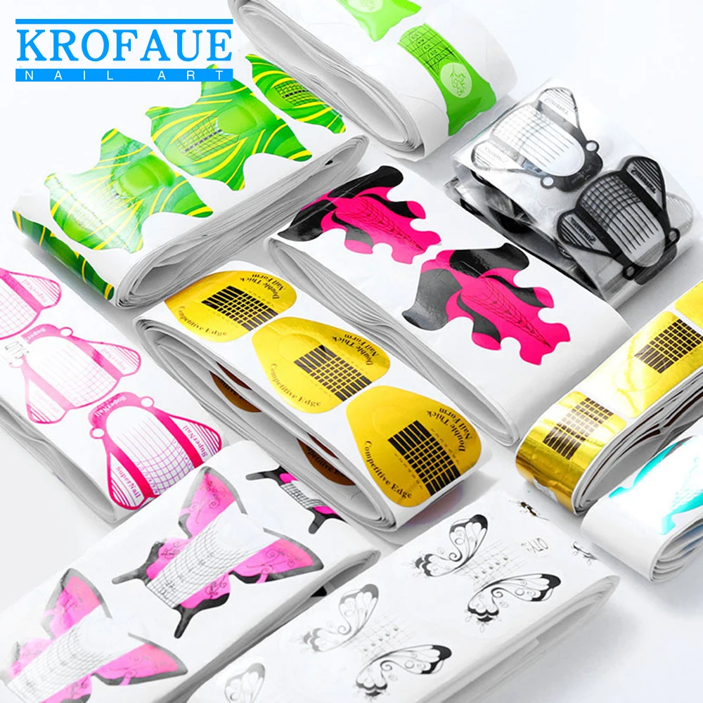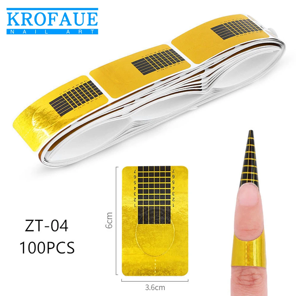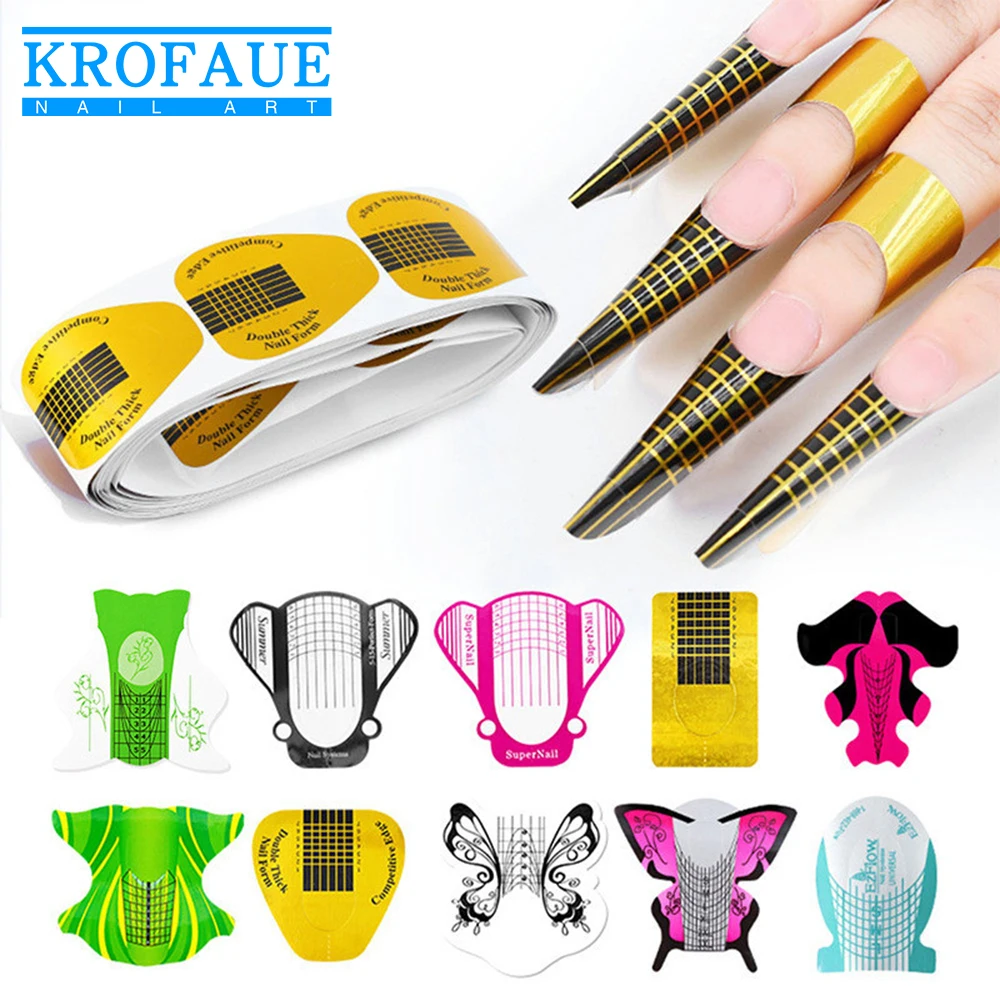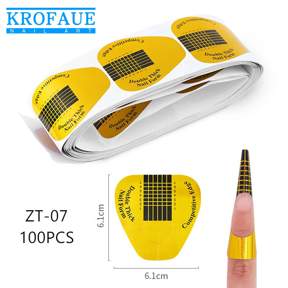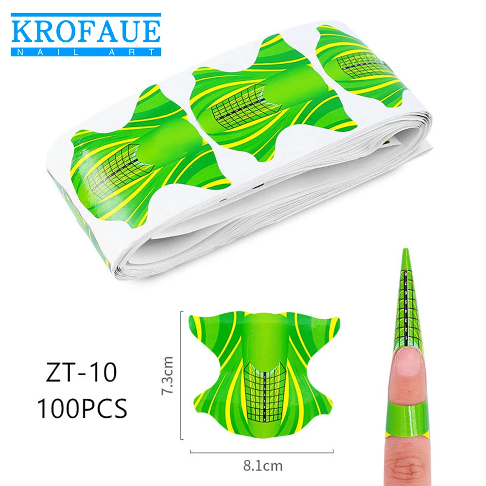 Формы для наращивания ногтей KROFAUE, 100 шт., бумажные наклейки, акриловые наконечники для УФ-геля, 10 видов стилей держатель для маникюра и дизайна ногтей