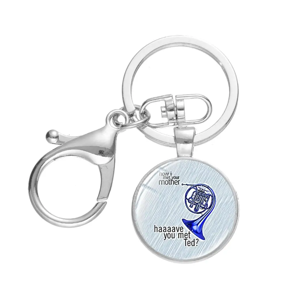 Брелок для ключей HIMYM, желтый зонтик, синий рог, ТВ-шоу, как я встретил вашу маму, с мультяшным узором, стеклянный подвесной брелок