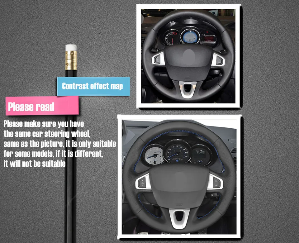 Пожалуйста, прочитайте перед покупкой (если вам нужны другие продукты, вы также можете проконсультироваться со службой поддержки клиентов) Перед покупкой, пожалуйста, проверьте рулевое колесо автомобиля и сравните с рулевым колесом на картинке. (Наша крышка рулевого колеса является индивидуальным продуктом, если есть какие-либо различия, она не будет применяться)! A Этот товар-чехол для руля, а не руль! A Этот продукт подходит для Renault Megane 3 2009-2014 Fluence ZE 2009-2016 Scenic 2010-2015 других моделей. Если у вас есть какие-либо вопросы, пожалуйста, сначала свяжитесь со службой поддержки клиентов