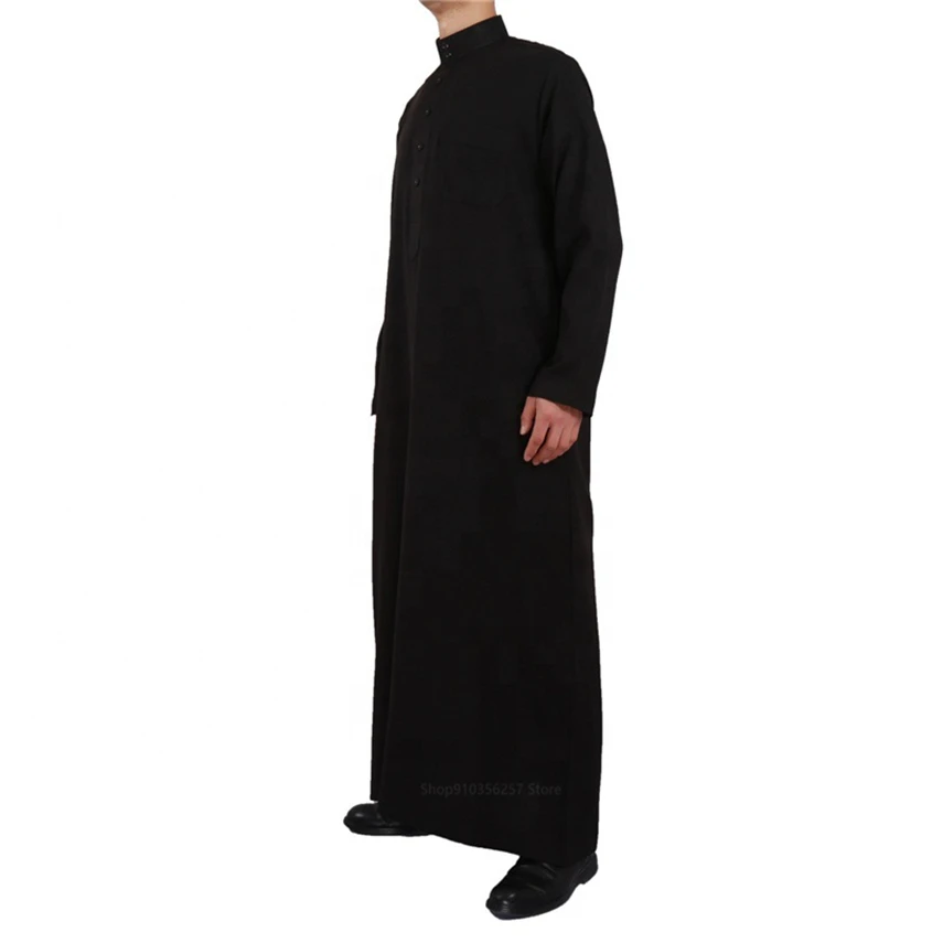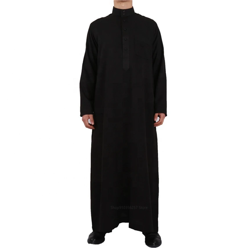 Мужская мусульманская одежда Jubba Thobe однотонная с длинным рукавом Средний Восток Повседневная традиционная молитва Арабская Дубай Катар Исламская одежда