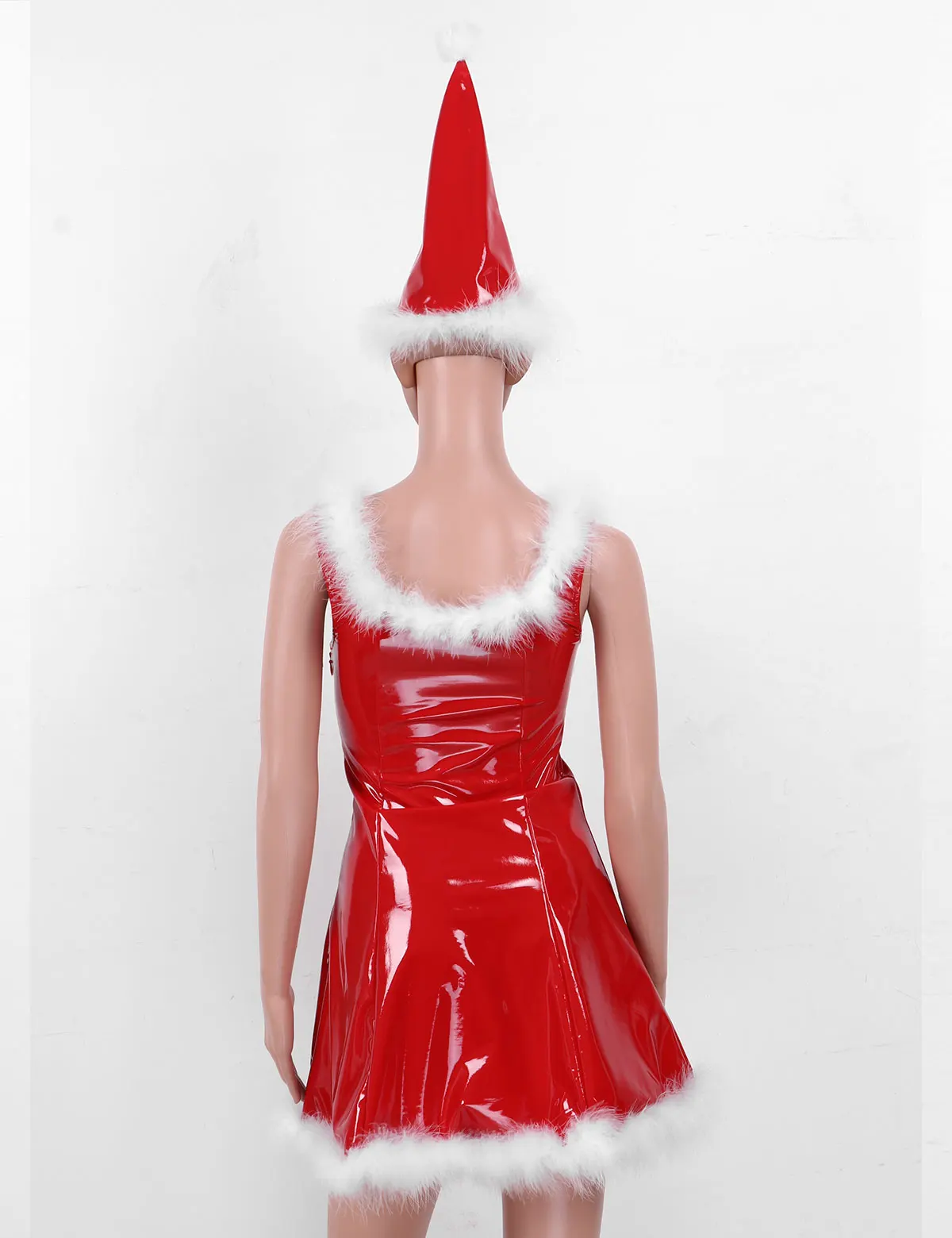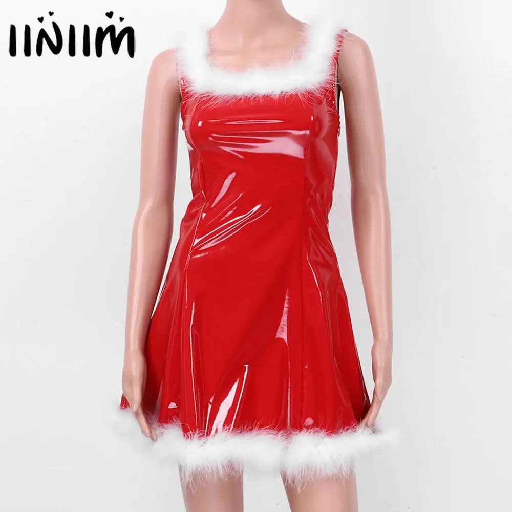 Особенности: Женское рождественское нарядное платье Mrs Santa Claus; Рождественский костюм; Платье с шапкой; Мокрый внешний вид. С квадратным вырезом и без рукавов, с белой отделкой перьями на воротнике и подоле, трапециевидной формы, потайной боковой застежкой-молнией. Сочетайте остроконечную шляпу, сделайте вас милым и немного озорным. Хорошая эластичная и гладкая ткань, удобная в носке. Идеально подходит для повседневной носки, Рождества, тематических вечерние, косплей, клуб, отдых, на открытом воздухе, на сцене и т. д. Перед покупкой проверьте таблицу размеров, рекомендуется ручная стирка.