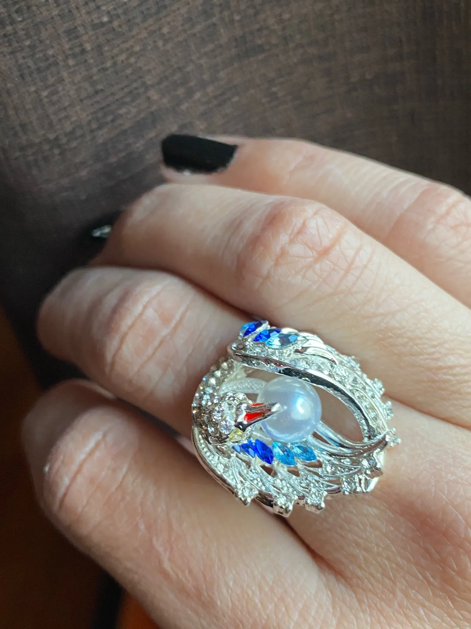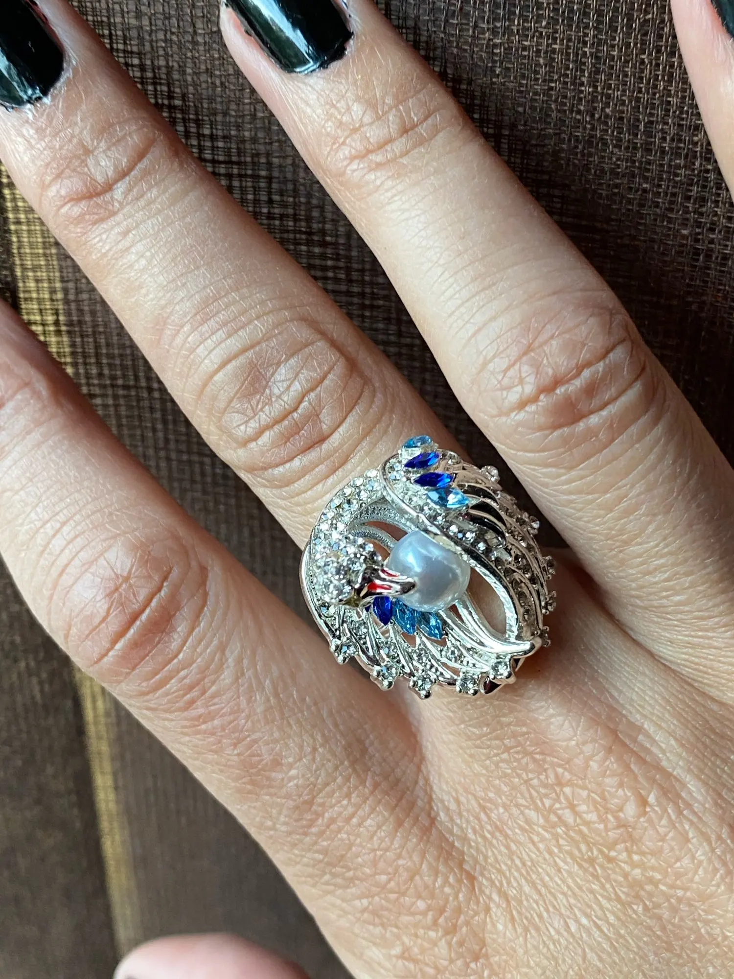 Изысканные блестящие Роскошные винтажные обручальные кольца с белым лебедем жемчужное свадебное кольцо для женщин и девочек, ювелирные изделия Вечерние