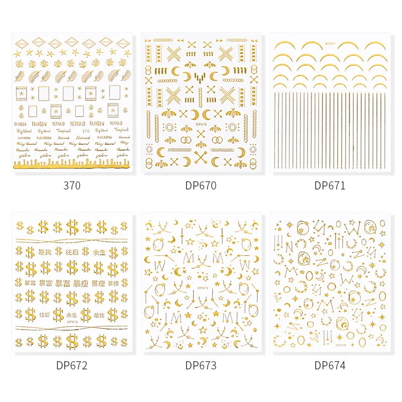 Золотистые 3D-Наклейки для дизайна ногтей, тисненые звезды, луна, З...