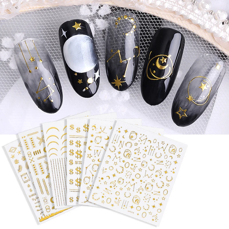 3D наклейки для ногтей, декоративные наклейки для ногтей, звезда, луна