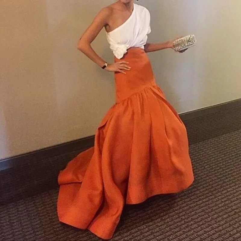 Оранжевая юбка-Русалка с длинным шлейфом, женские юбки для выпускного вечера, женская одежда на заказ