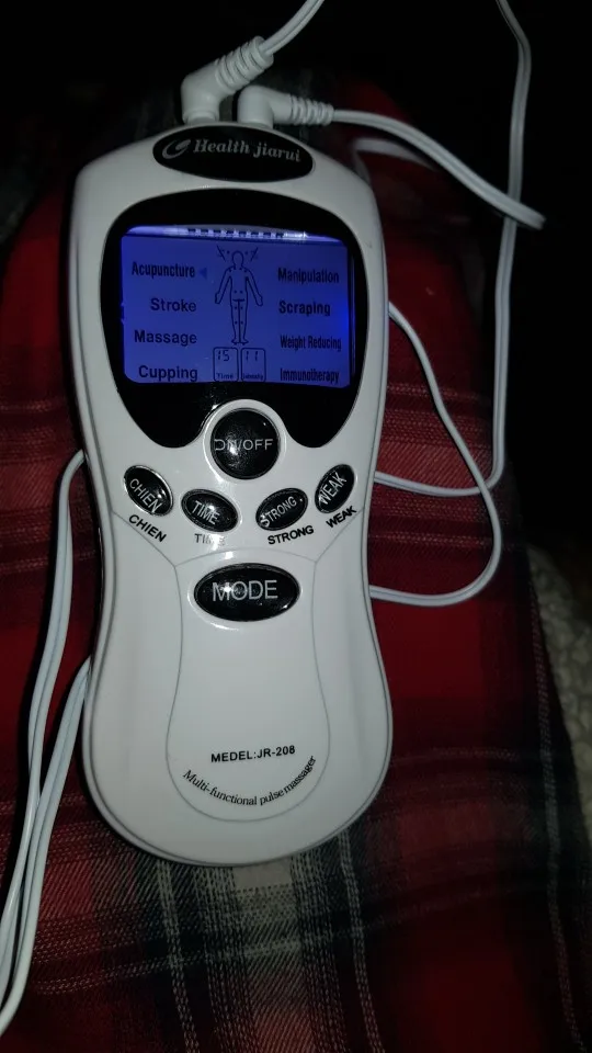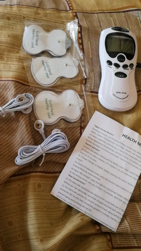 Это идеально. Товар прибыл в течение 22 дней, что является чудом. Обычно это занимает 3-4 месяца. Товар доступен на английском и китайском языках. Это лучше, чем другие продукты, потому что это дешевле и двухканальный. Мы можем использовать его на больших мышцах или на обеих сторонах тела. Я попробовал это, и это действительно хорошо. Поставляется в полиэтиленовом пакете с 6 прокладками, 2 проводами, зарядным устройством и машиной tens. Я рекомендую его на 100%, и я буду покупать снова.