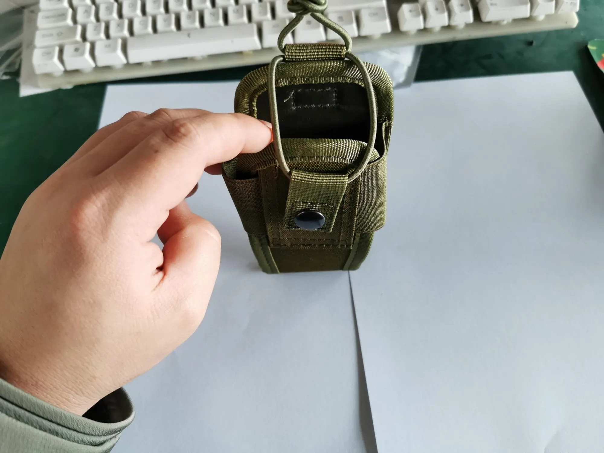 Отправка быстрая, упаковано хорошо и просто, нитки не торчат, сделано качественно. Крепление к стропам Молли. Для компактных раций большеват, но не критично.