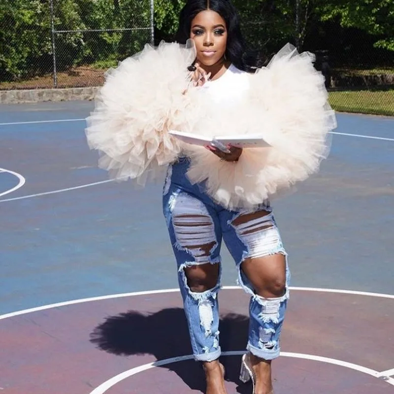 Шикарная женская рубашка с длинными рукавами, Одноцветный многоуровневый взъерошенный женский топ, пышная фатиновая одежда для мероприятий, модные топы на заказ