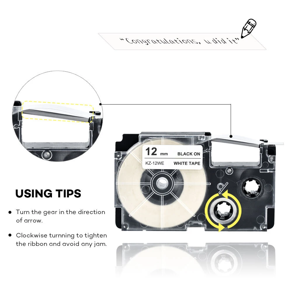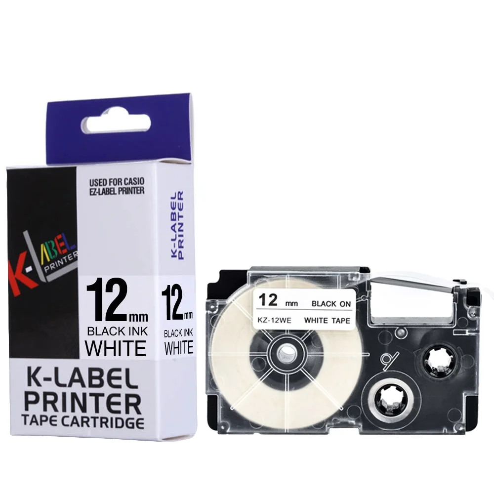 XR-12WE лента для этикеток, 5 шт., Совместимость с Casio, черный на белом, лента для этикеток casio, 12 мм, XR12WE, для принтеров EZ, KL-120