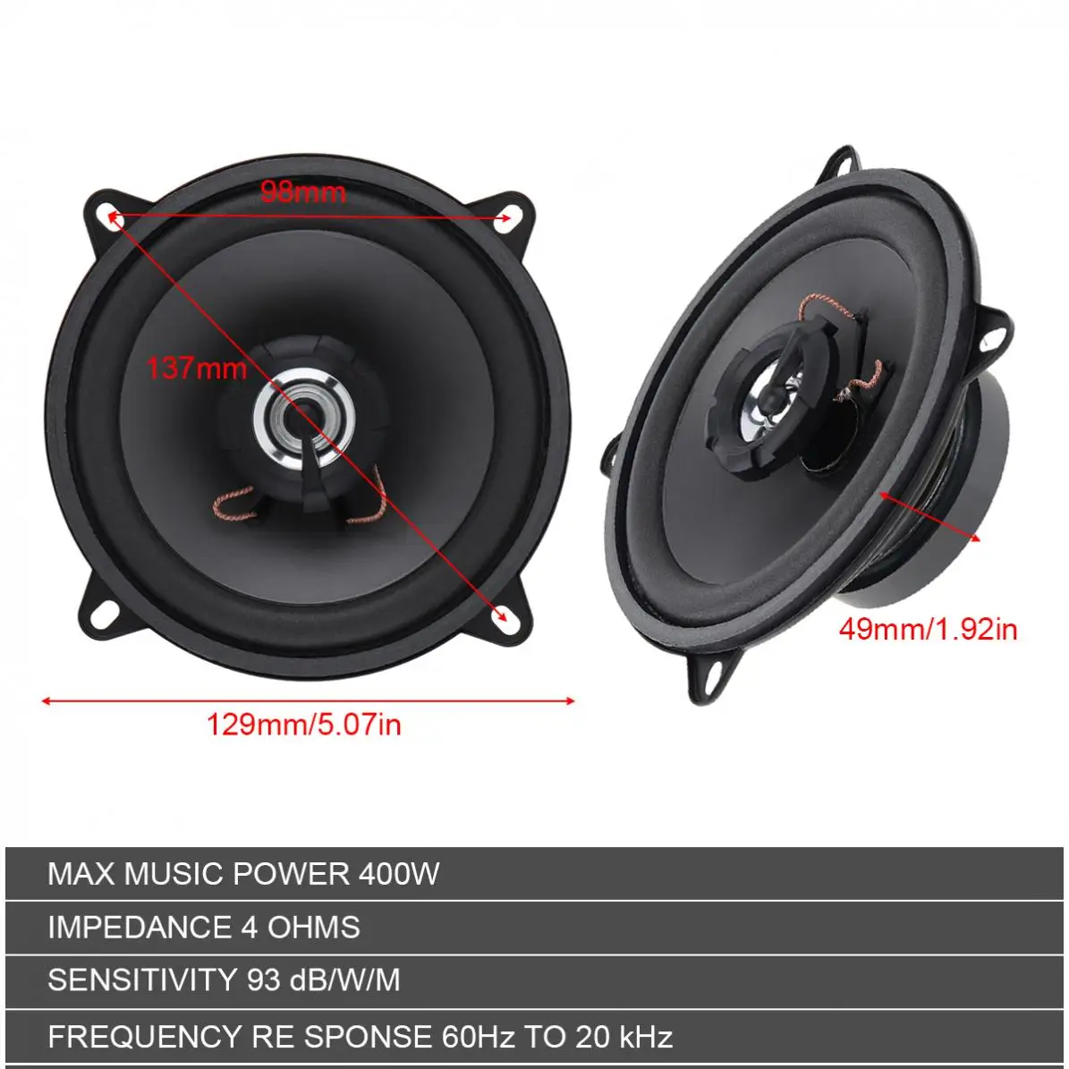 1 шт., 5-дюймовый 400 Вт 2-полосный автомобильный Hi-Fi коаксиальный динамик для автомобильной двери, авто аудио, стерео, полный диапазон частот, динамик s
