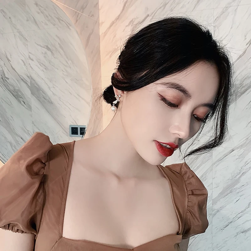 Yaologe яркие золотые стразы с бантом, милые изящные серьги с жемчугом, 2020, элегантные очаровательные ювелирные изделия для женщин