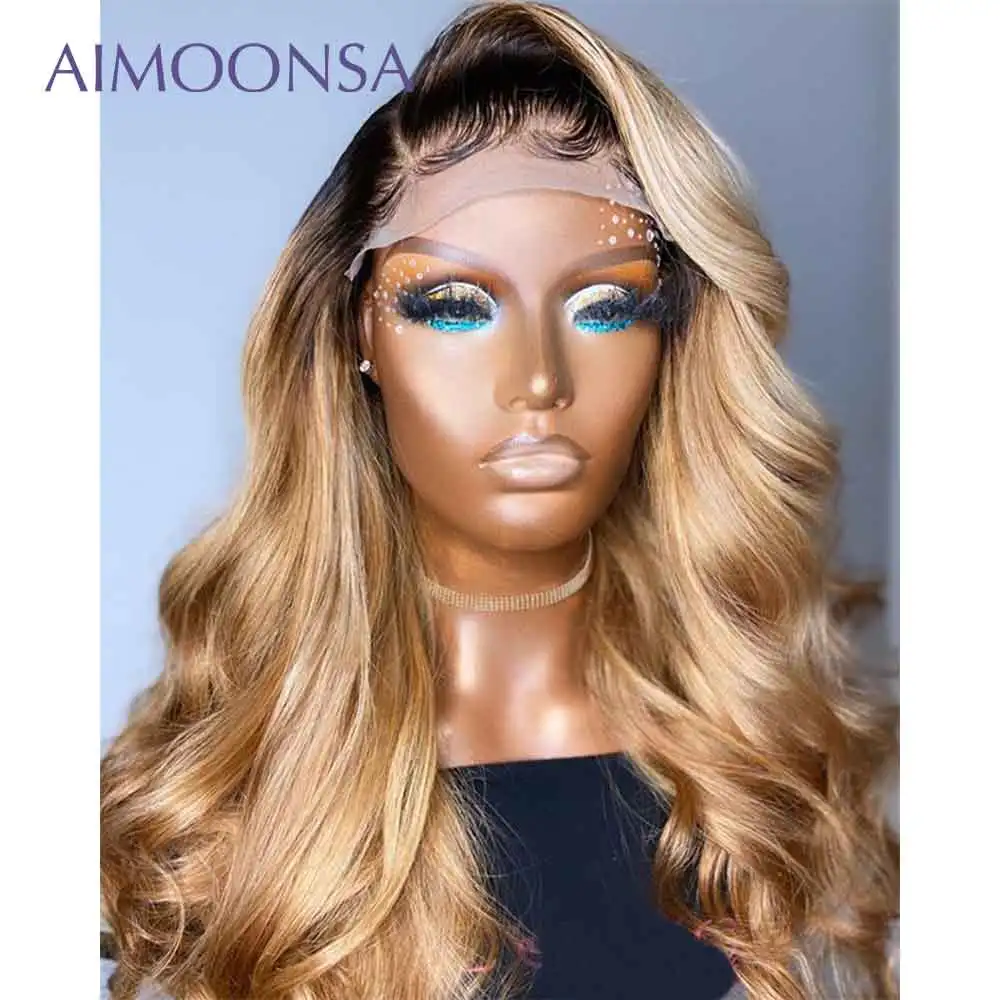 Омбре медовый блонд, парики на шнурке, волнистые человеческие волос...