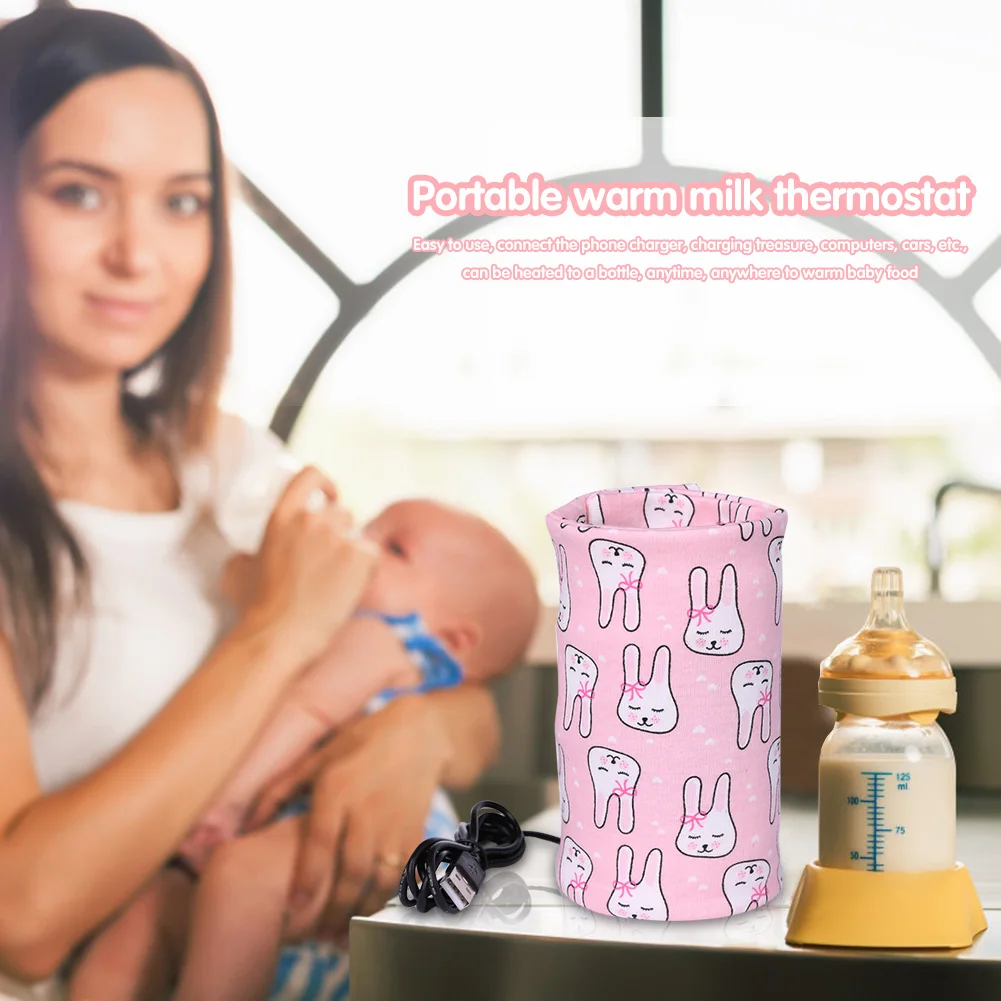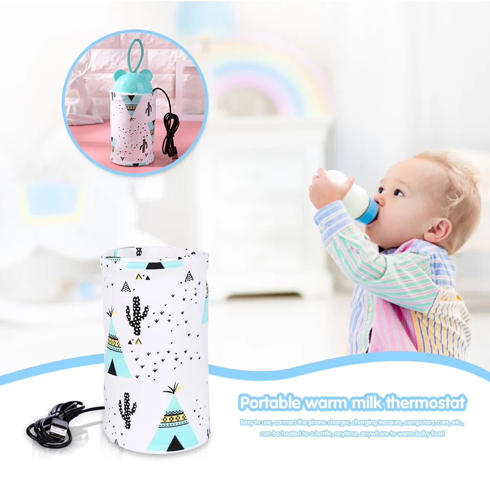 Портативный подогреватель для детских бутылочек из хлопка с принтом, чашка для молока для кормления младенцев, USB-разъем, сумка для хранения, подогреватель, инструменты для кормления детей