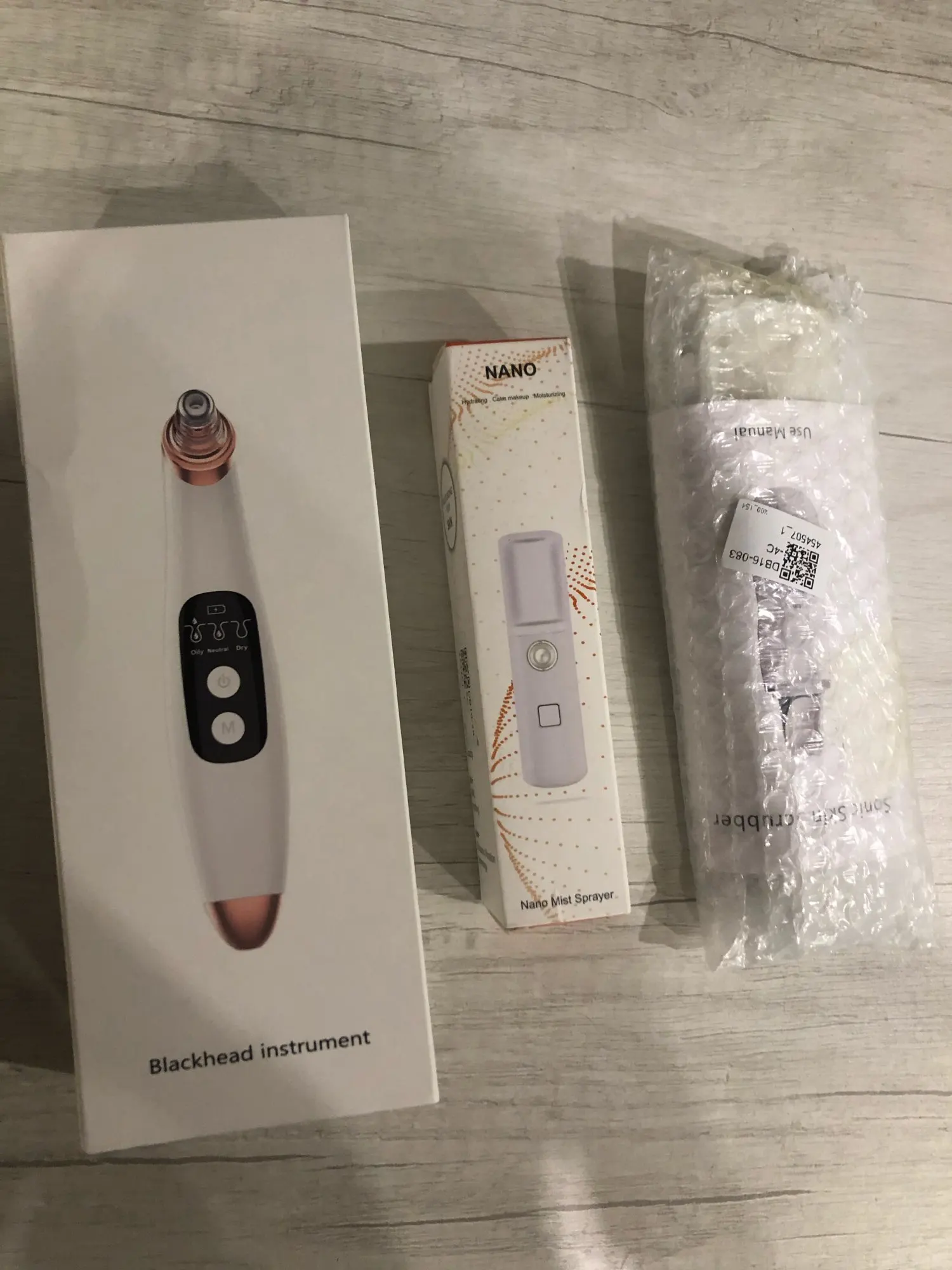 Заказ пришёл очень быстро! Ультразвук работает хорошо, но на распаренное лицо работает вроде лучше. Просто, когда сухое лицо, конкретно видно,что он собирает, а на влажное из за воды непонятно. Лицо конечно становится отшлифованное, супер гладкое, но глубокие поры не чистит, надо руками. Видимо чистит поры мелкие которые начинают только загрязняться. Прошла неделя лицо гладкое. Распылителем я не пользовалась так как лицо было хорошо распаренное. И последнее, третий аппарат, который втягивает якобы поры, пришёл без батареек, поэтому еще не пробовала. Куплю, попробую и сразу напишу дополнение - отзыв. Покупайте батарейки пальчиковые, обычные заранее если таковых в доме не имеется! В принципе покупкой довольна. Продавцу спасибо за быстроту и честность. посылка отслеживалась по шагово смс на телефон. Для домашнего ухода хорошая вещь.