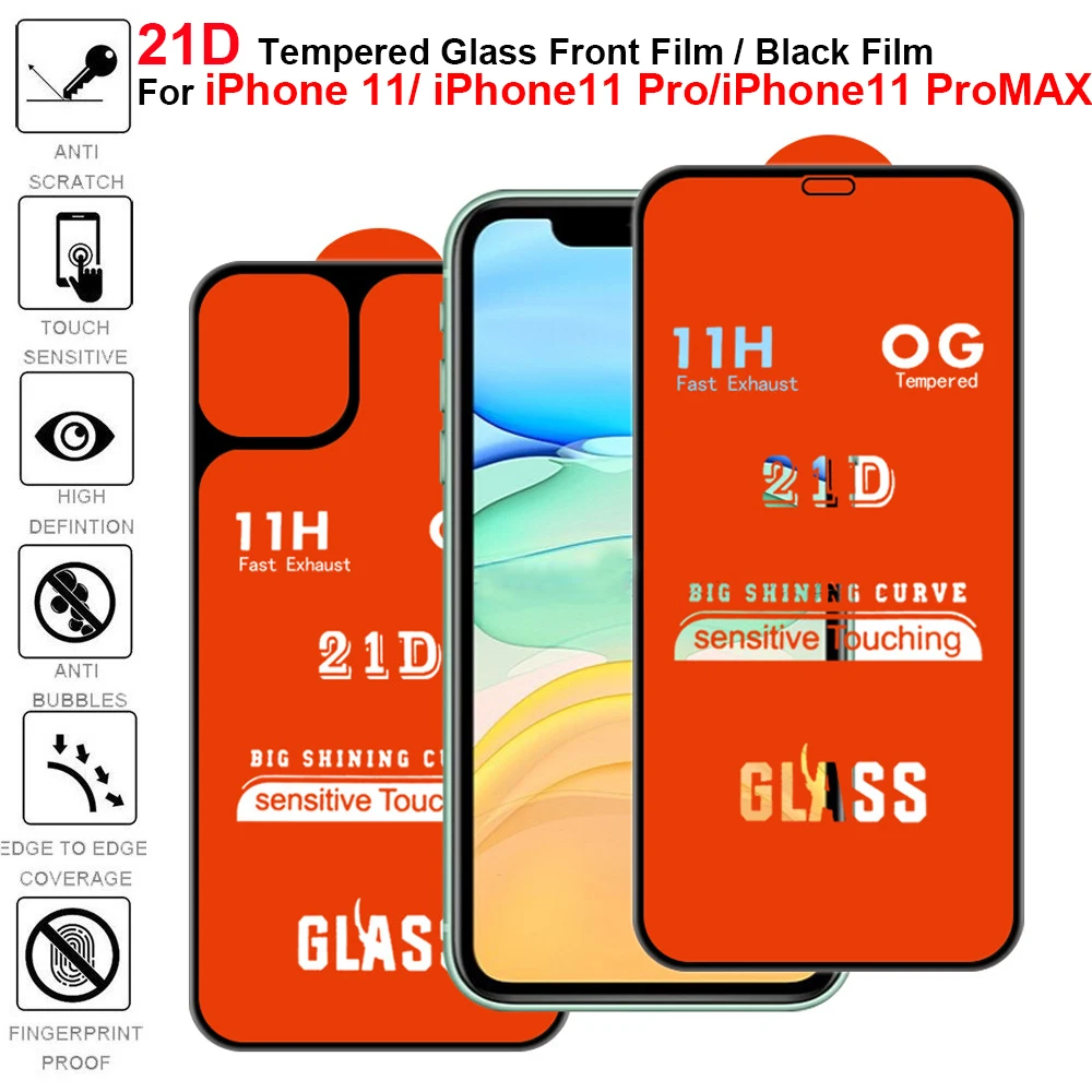 21D полное покрытие закаленное стекло Передняя пленка для iPhone 11 Pro Max Защитная пленка для экрана для iPhone 11 серии