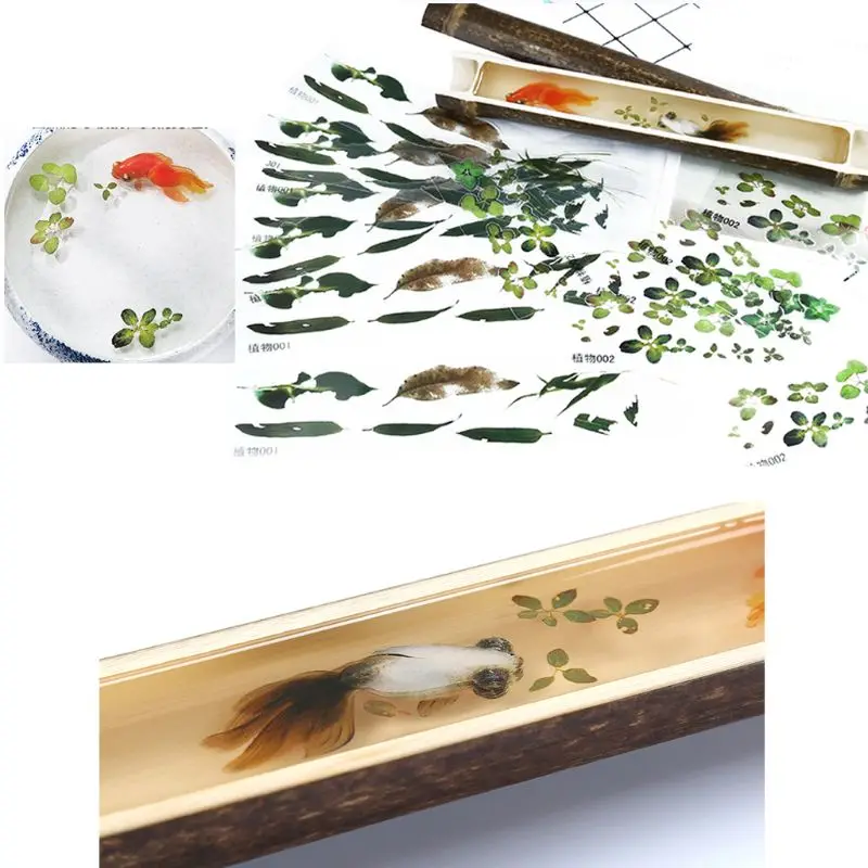 5 шт 3D листья чистая вода трава пленка наклейка для смолы картина Золотая рыбка Jewely