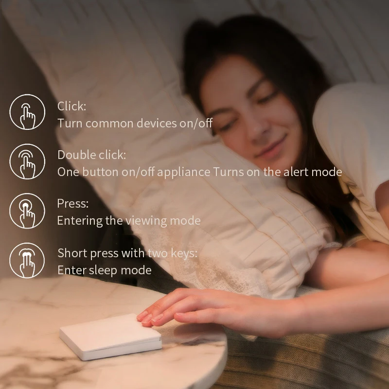 Aqara настенный выключатель беспроводной версииНе может быть проводной, может работать только для смарт-лампы Xiaomi или свет через ZigBeeПортативный, реализовать контроль вездеМожет использоваться в качестве ключевого дверного звонкаЭкстренный вызов SOSФункция защиты и снятияБеспроводной частота: 2,4 ГГц (2400-2483,5 МГц)Беспроводное подключение: ZiGBeeВстроенный аккумулятор CR2032Рабочая температура: -5 - 60 градусов по ЦельсиюРабочая влажность: 5 - 95pctПожалуйста, загрузите приложение «MiHome» в Google Play или APP Store