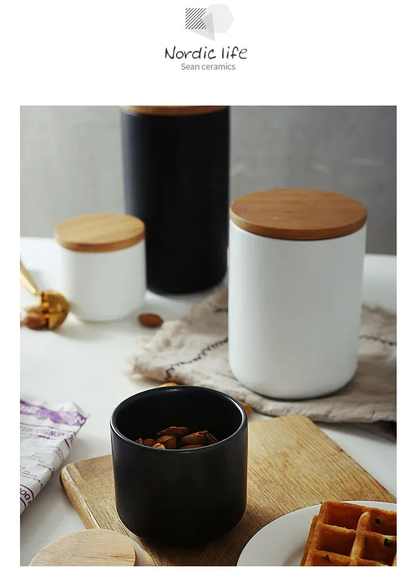 1 шт. нордическая керамическая банка кухонная бутылка для хранения с герметичной деревянной крышкой, Кухонный Контейнер для грубых злаков, конфет, кофе, зерен, чая