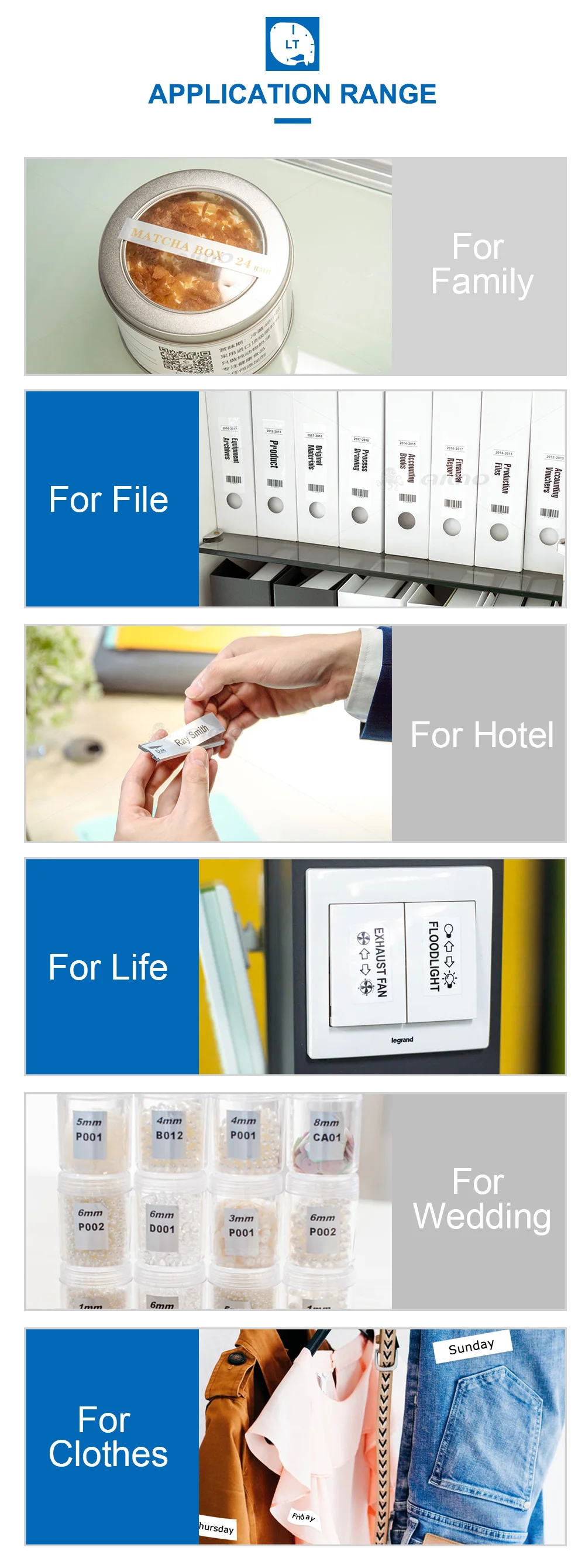 -Идеально подходит для использования в помещении, отлично подходит для легкой идентификации дома или офиса. Используется для таких задач, как подача документов, хранение и управление финансами, как файлы, папки, картонные коробки и коробки.