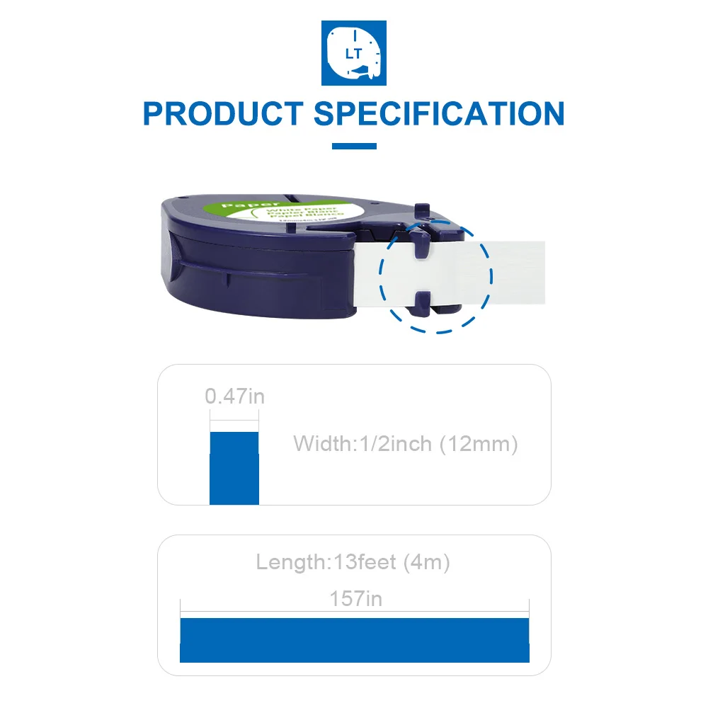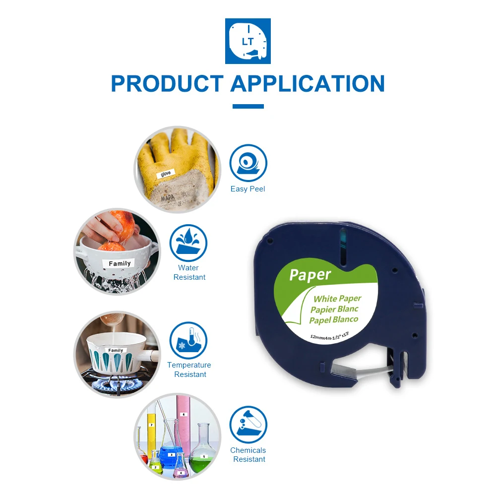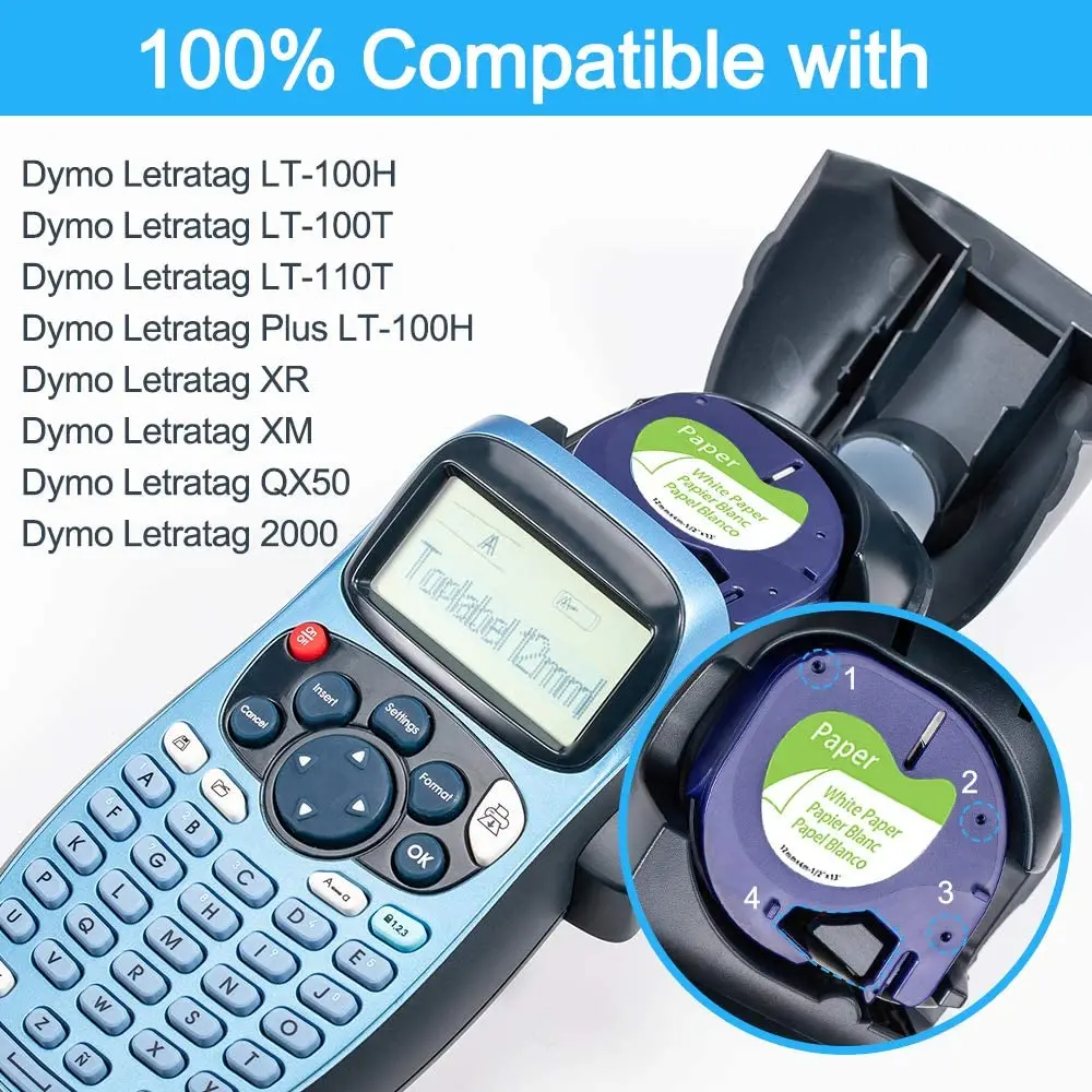 Labelife 91200 91330, совместим с Dymo LetraTag, черный на белом (12 мм x 4 м), бумажные этикетки, ленты для этикеток,