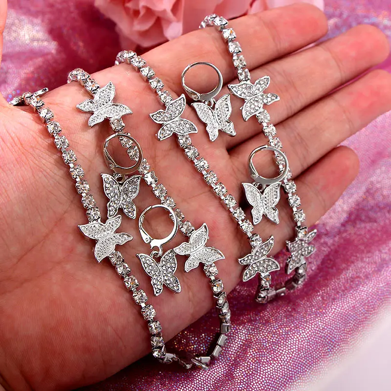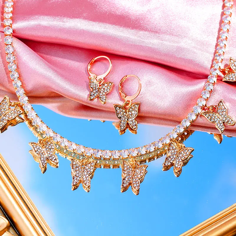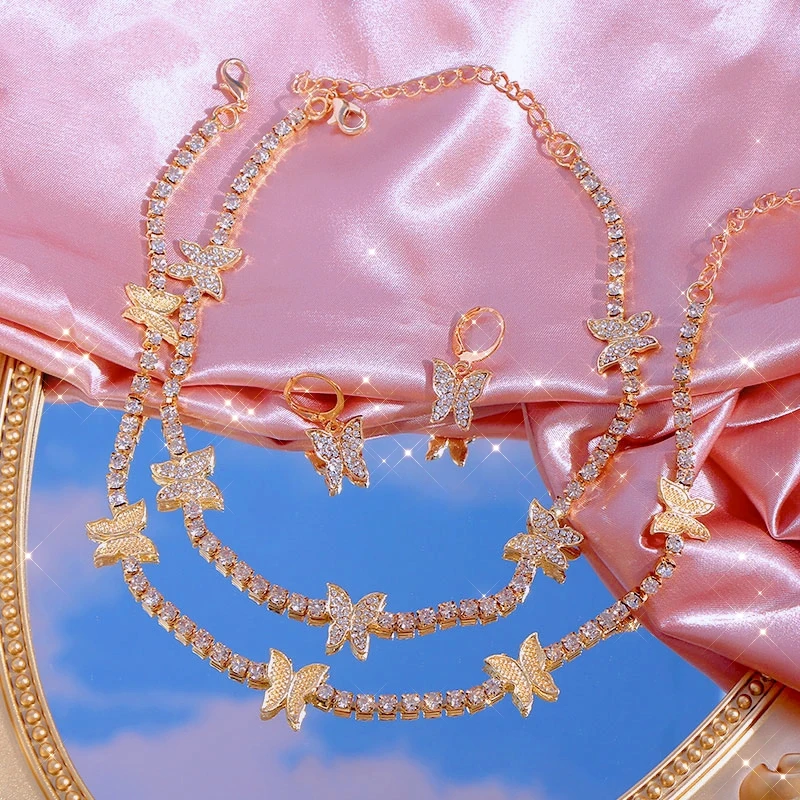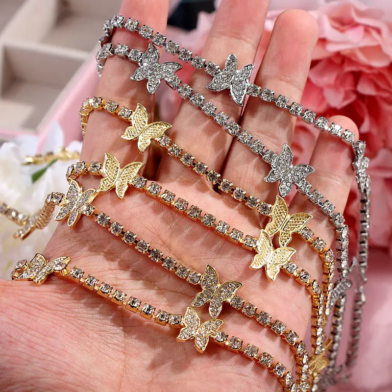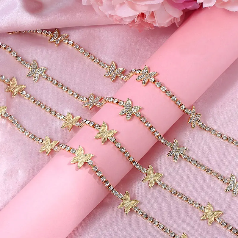 Ожерелье-чокер Стразы с 5 бабочками женское, колье из цепи для тенниса золотистого и серебристого цвета, модные ювелирные украшения, хороший подарок