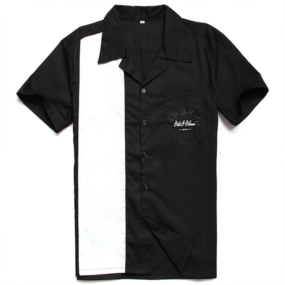 Хлопковая мужская рубашка ST126 размера плюс, винтажная рубашка с коротким рукавом в стиле Боулинг ретро рок