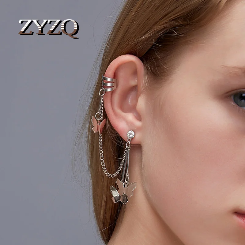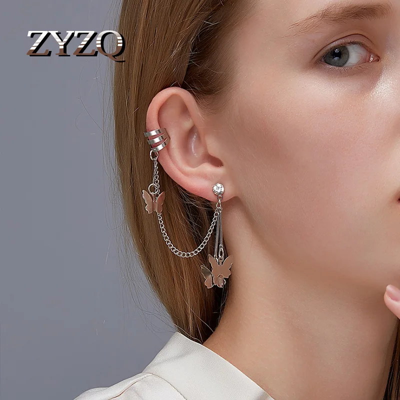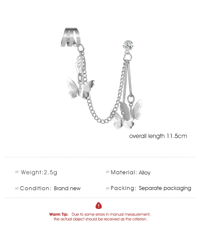 ZYZQ 1 шт., длинные серьги-бабочки с кисточками для женщин, клипсы с листьями, поддельные пирсинг спираль из сплава, пирсинг, серьги-каффы для ушей