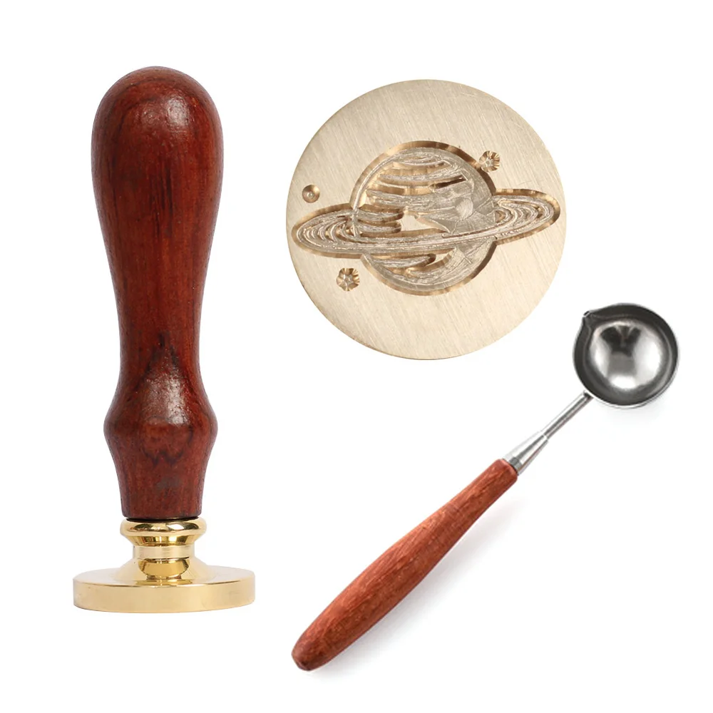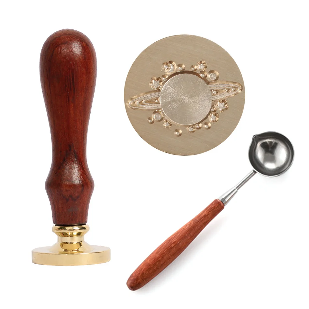 Деревянный штамп в стиле ретро, с Луной, звездами, планетой, звездным небом, головка штемпеля